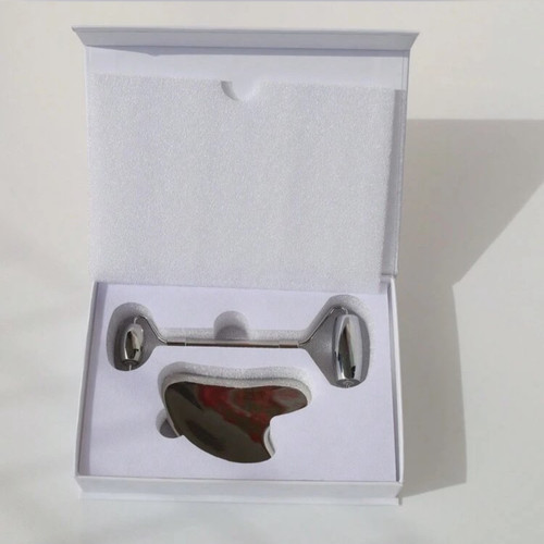 غلتک ماساژ صورت دو سر + سنگ گواشا قلبی شکل