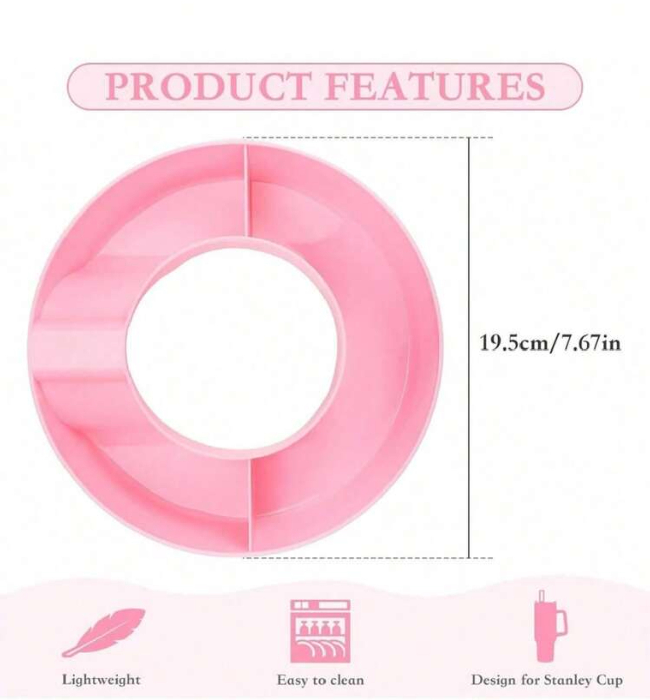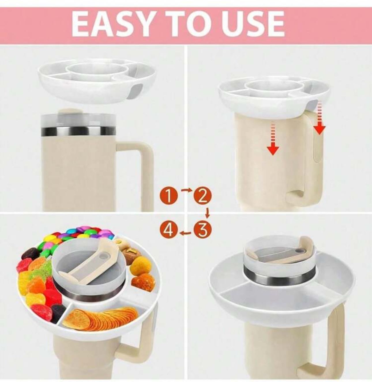 - طراحی شده برای قرارگیری روی لیوانهای بزرگ یا استنلی – نوشیدنی در پایین، تنقلات در بالا!