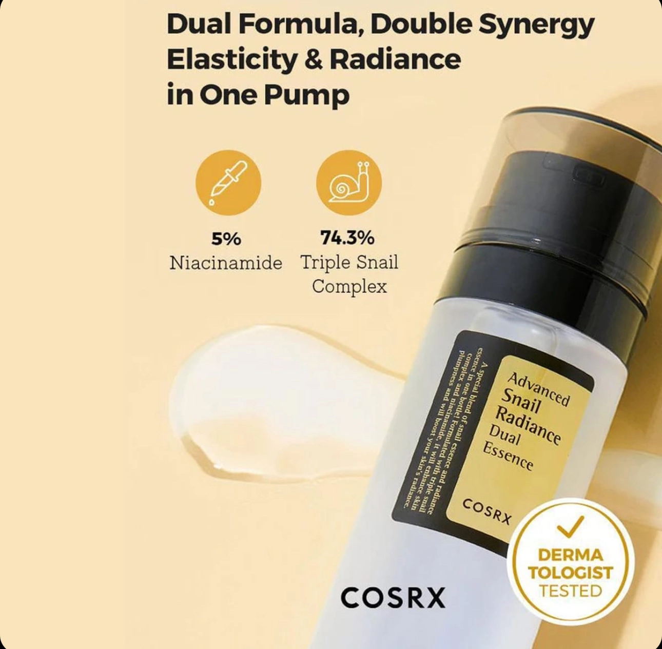 اسنس دوتایی حلزون و روشنکننده COSRX مدل Advanced Snail Radiance Dual Essence – حجم ۸۰ میل
