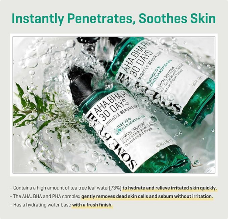 - دارای آب برگ درخت چای برای کنترل چربی و ضد التهاب