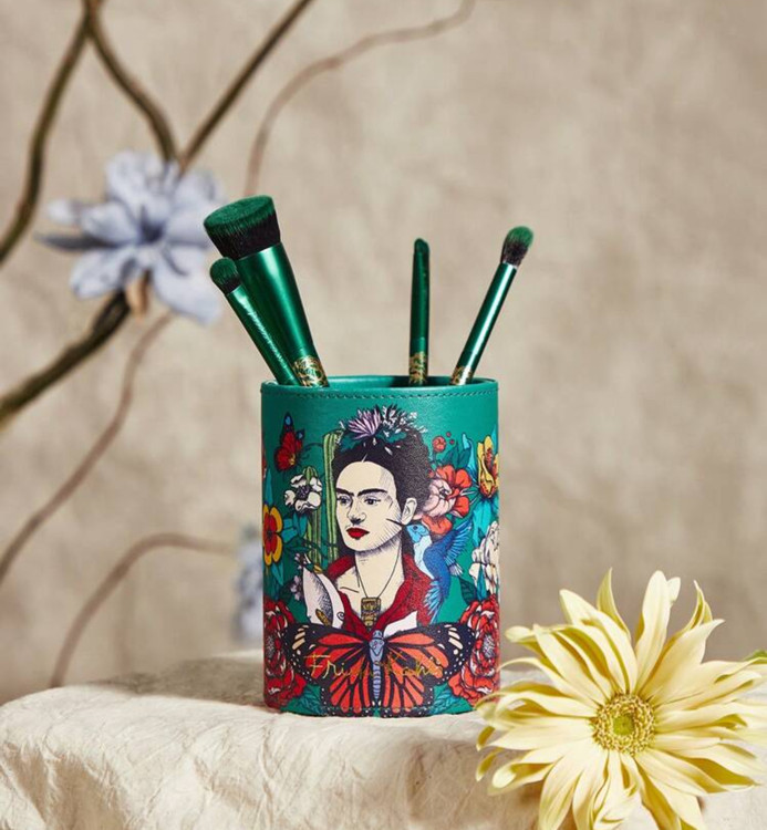 جای براش آرایشی فریدا کالو × SHEIN با طرح شخصیت و گل و پروانه – مناسب برای هدیه