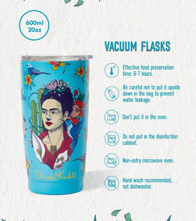 Frida Kahlo × SHEIN – ماگ حرارتی/لیوان سفری ۲۰ اونسی با طرح فریدا کالو – مناسب برای هدیه