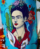 چاپ تصویر شخصیت فریدا کالو همراه با طرحهای گلدار و هنری – خاص، الهامبخش و زنانه