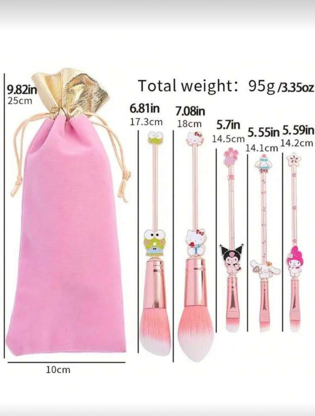 - ۶ عدد براش آرایشی با طرحهای مختلف هلو کیتی و شخصیتهای سانریو