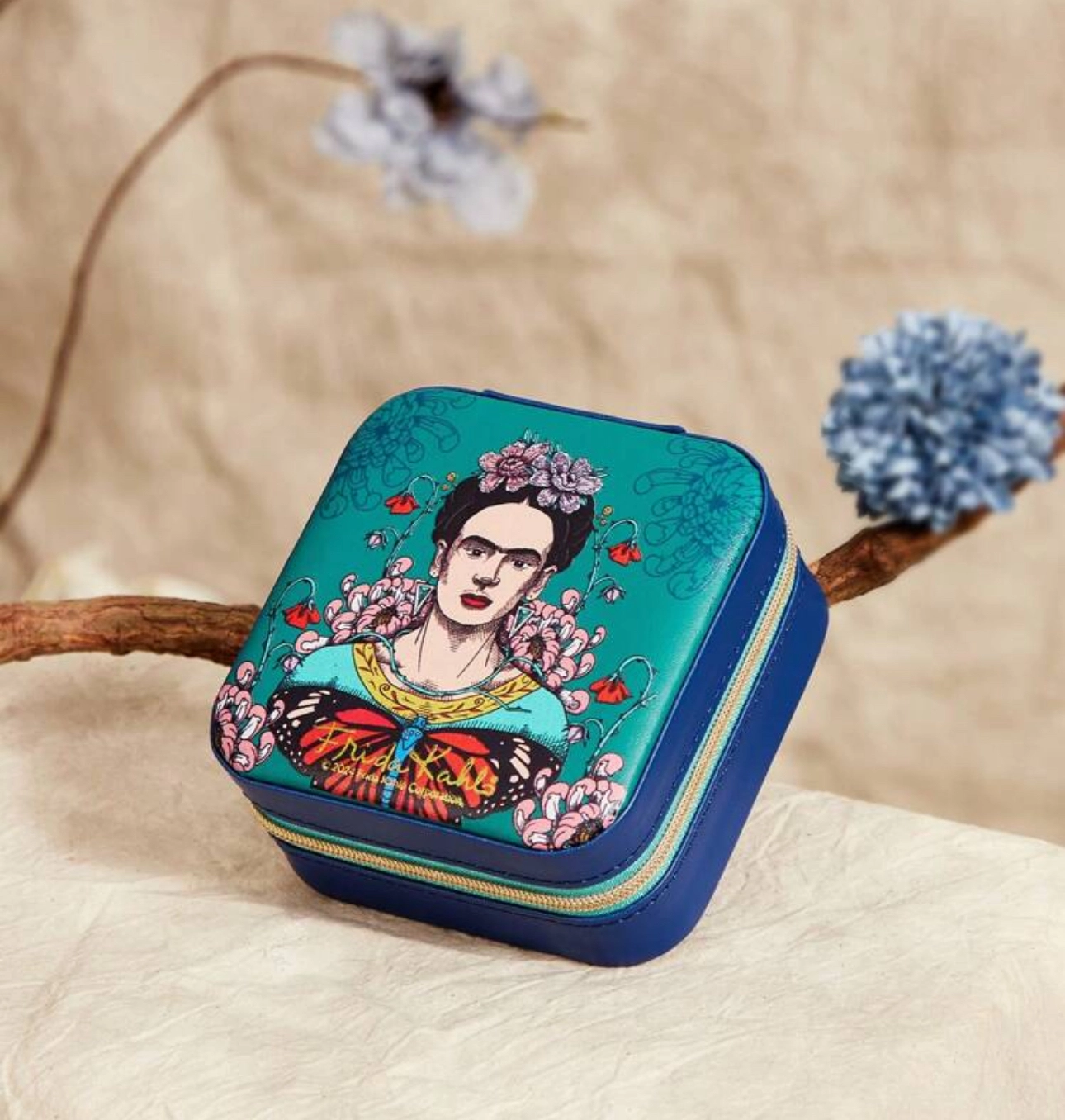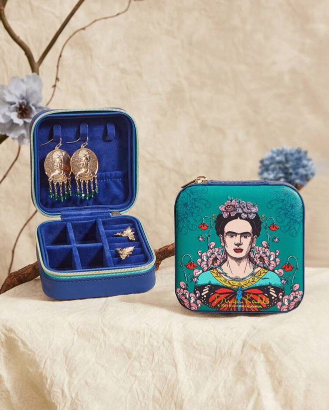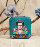 جعبه جواهرات با طرح شخصیت فریدا کالو و چاپ گلهای رنگارنگ