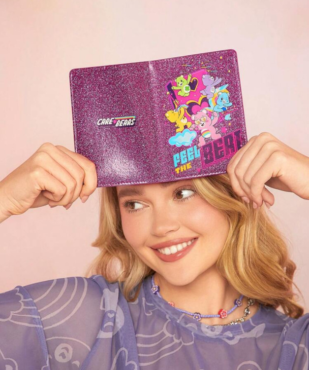 جلد پاسپورت بنفش با طرح خرس قلبیشکل – همکاری SHEIN با Care Bears