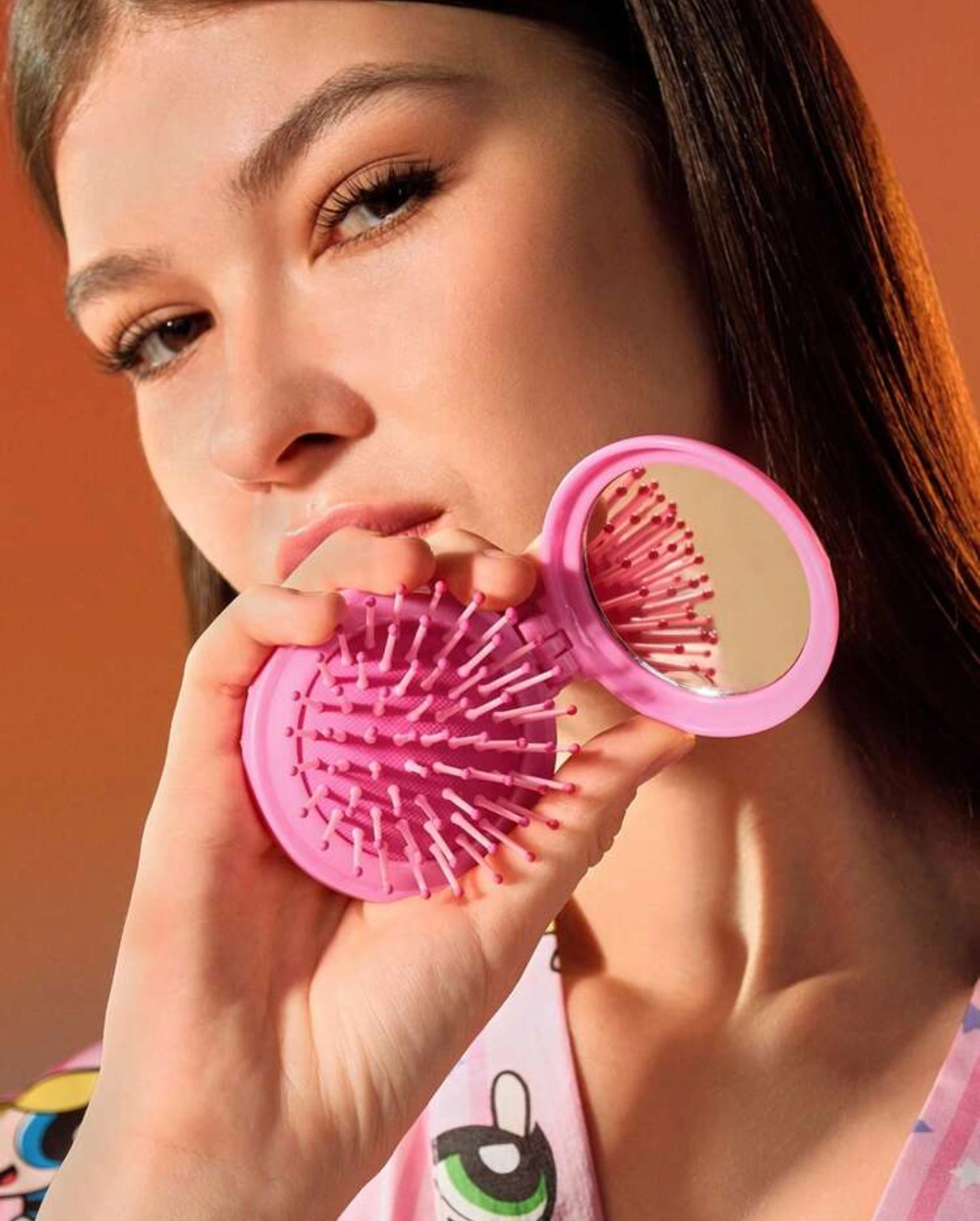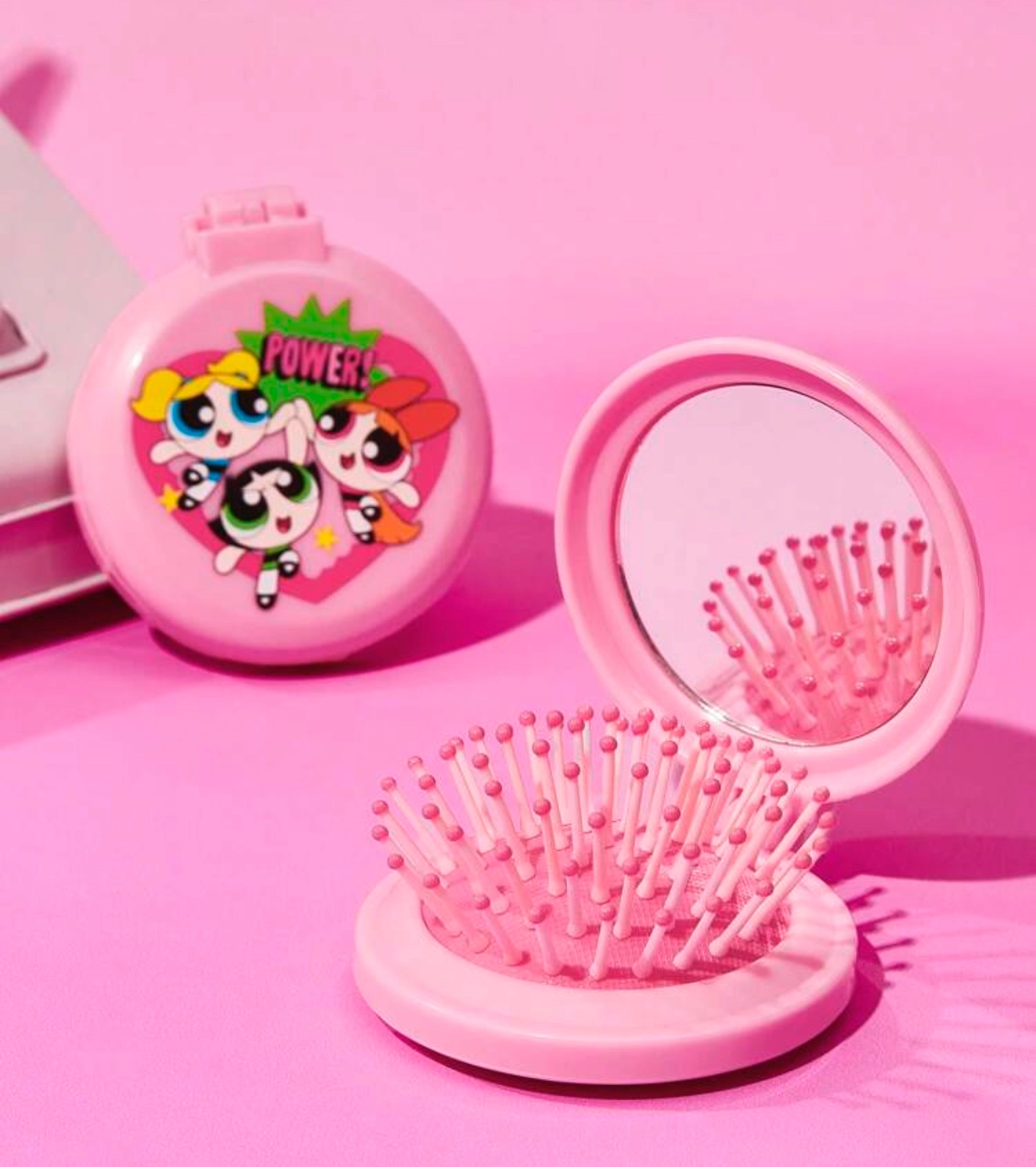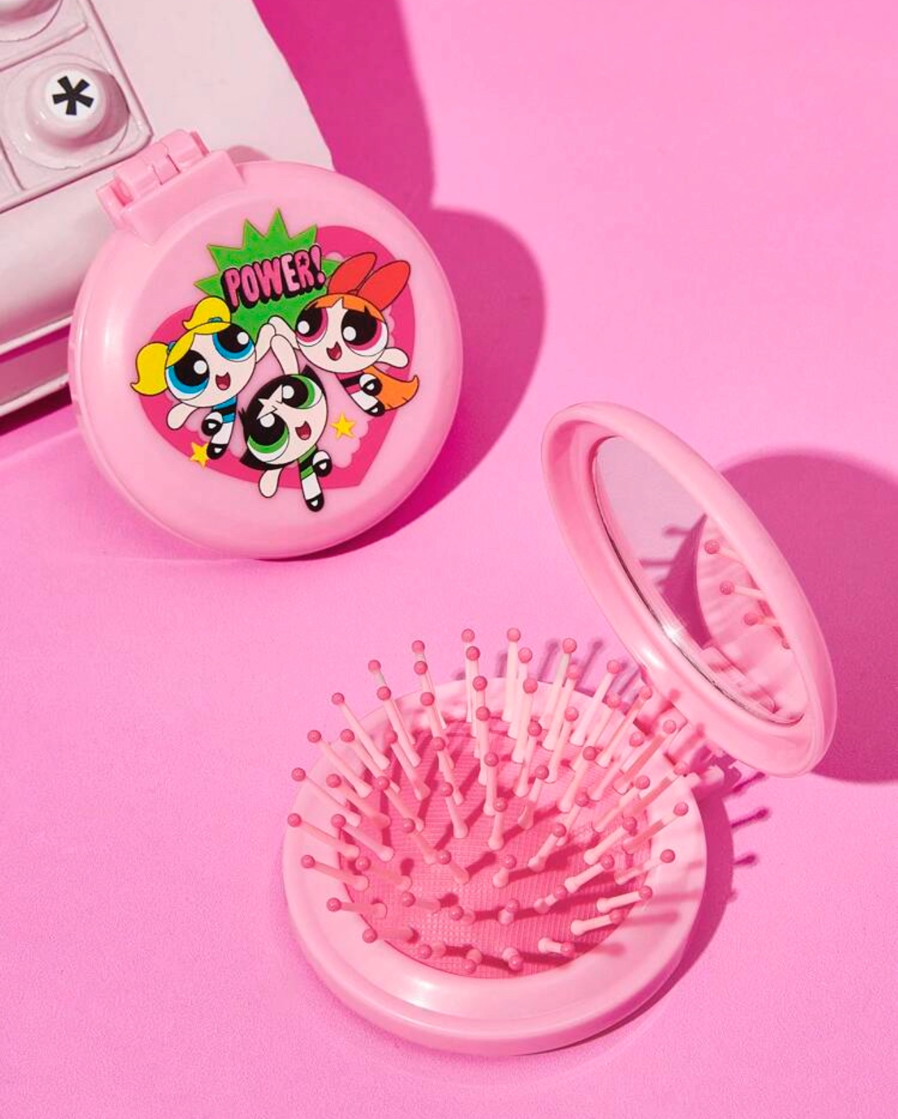 آینه و برس جیبی تاشو با طرح کارتونی Blossom، Bubbles و Buttercup – همکاری SHEIN با The Powerpuff Girls