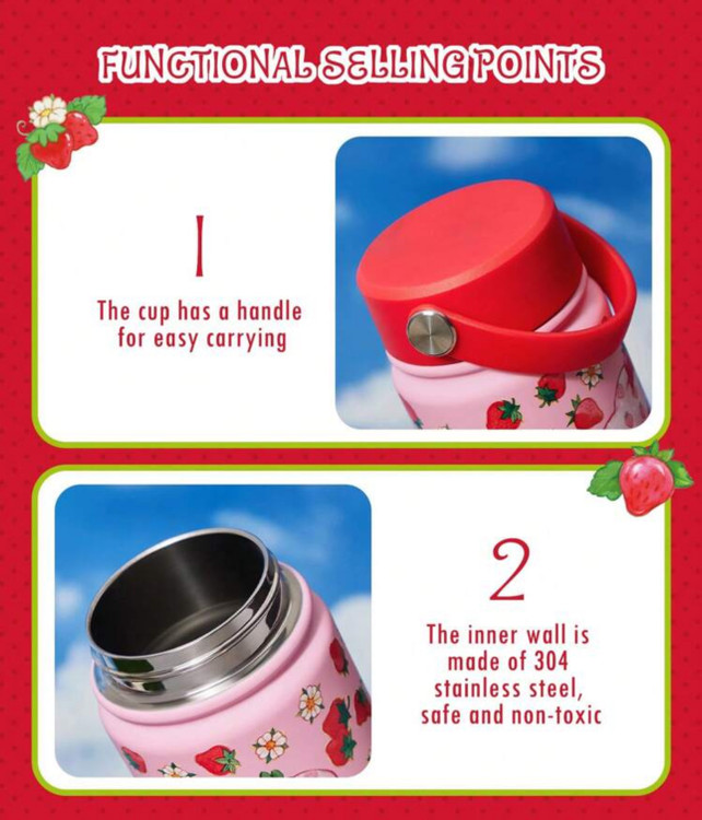 Strawberry Shortcake X SHEIN Cute Cartoon Character & Strawberry Pattern Insulated Cup