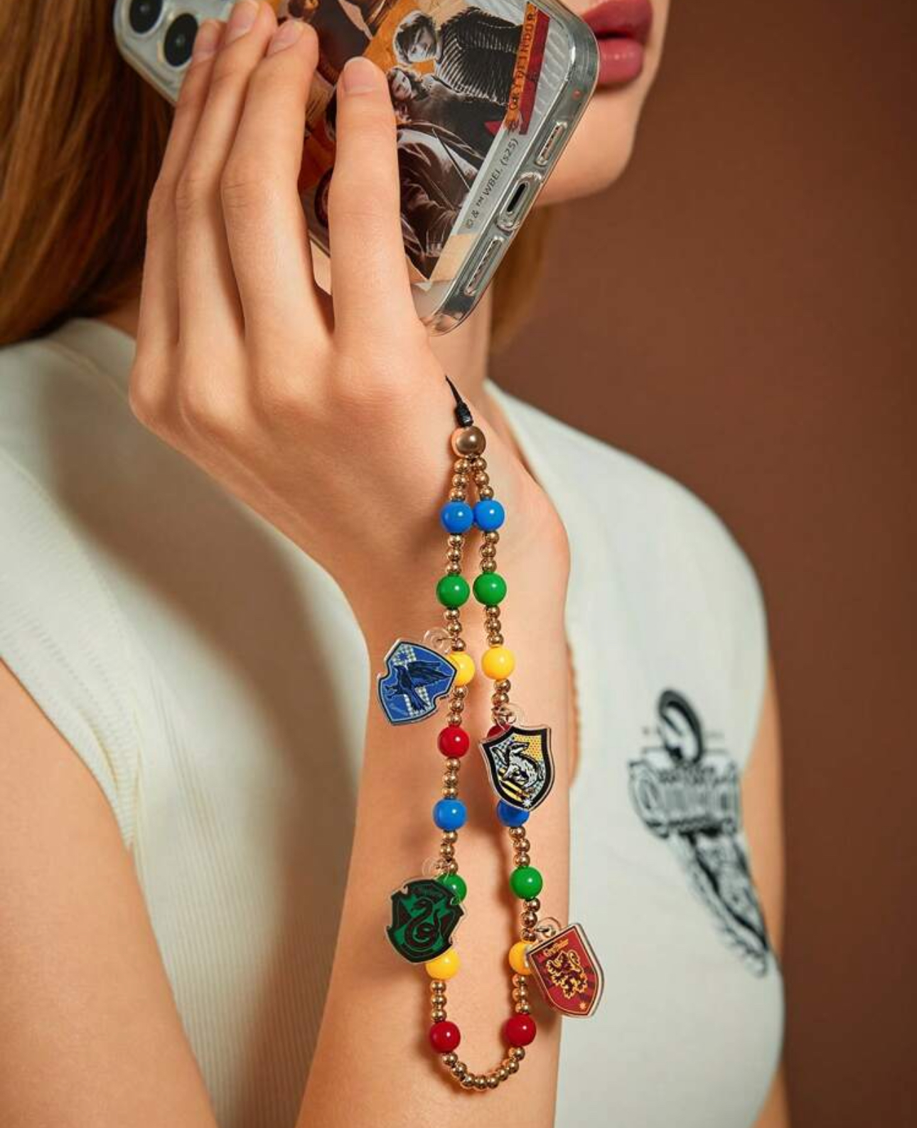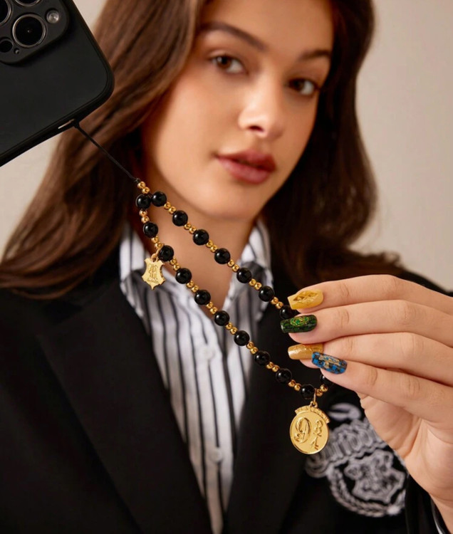 نام محصول: بند موبایل دستی با مهرههای دستساز طرح قلب – همکاری HARRY POTTER با SHEIN، مدل میمون