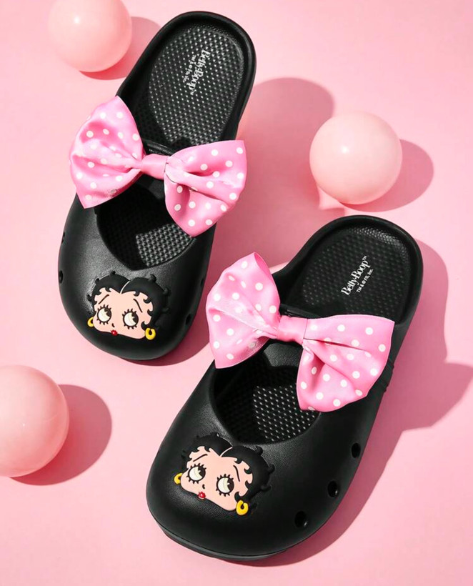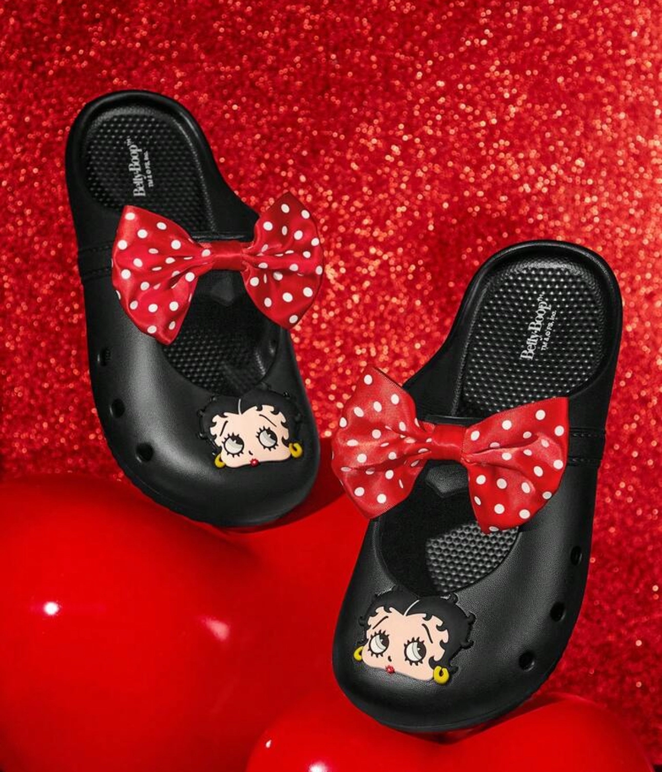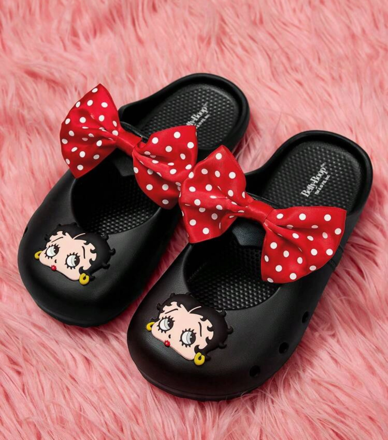 دمپایی فانتزی بتی بوپ x SHEIN – طراحی پاپیون بزرگ، طرح کارتونی خالخالی قرمز، سبک و مناسب برای داخل و خارج منزل
