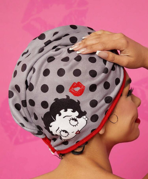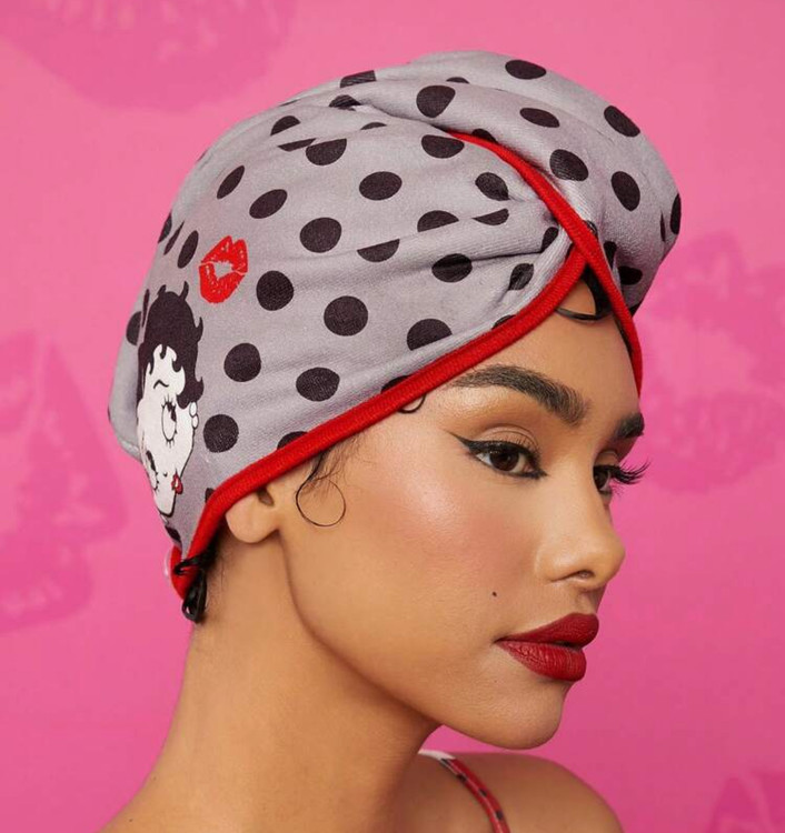 کلاه خشککن مو بتی بوپ x SHEIN – طرح خالخالی و لب کارتونی، سبک رترو، مناسب هدیه و دکور حمام