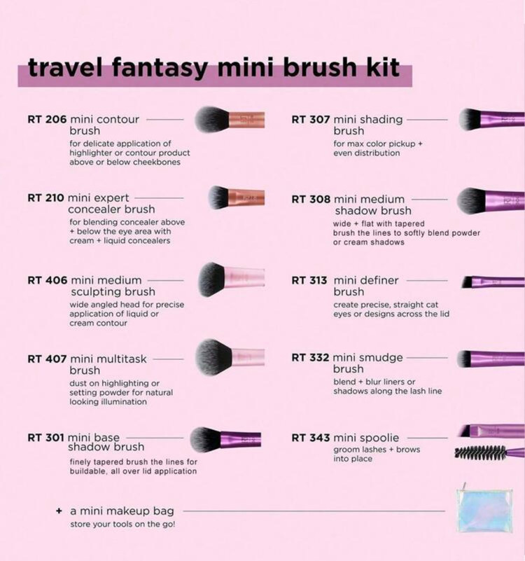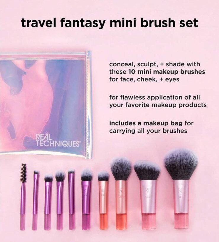ست براش آرایشی Real Techniques Travel Fantasy Mini Brush Set یک مجموعهی ۱۱ تکهی جمعوجور و کاربردی است که برای سفر و استفادهی روزمره طراحی شده است. این ست شامل ۱۰ براش مینی و یک کیف آرایشی است که به شما امکان میدهد آرایش کامل صورت و چشم را با دقت و راحتی انجام دهید.