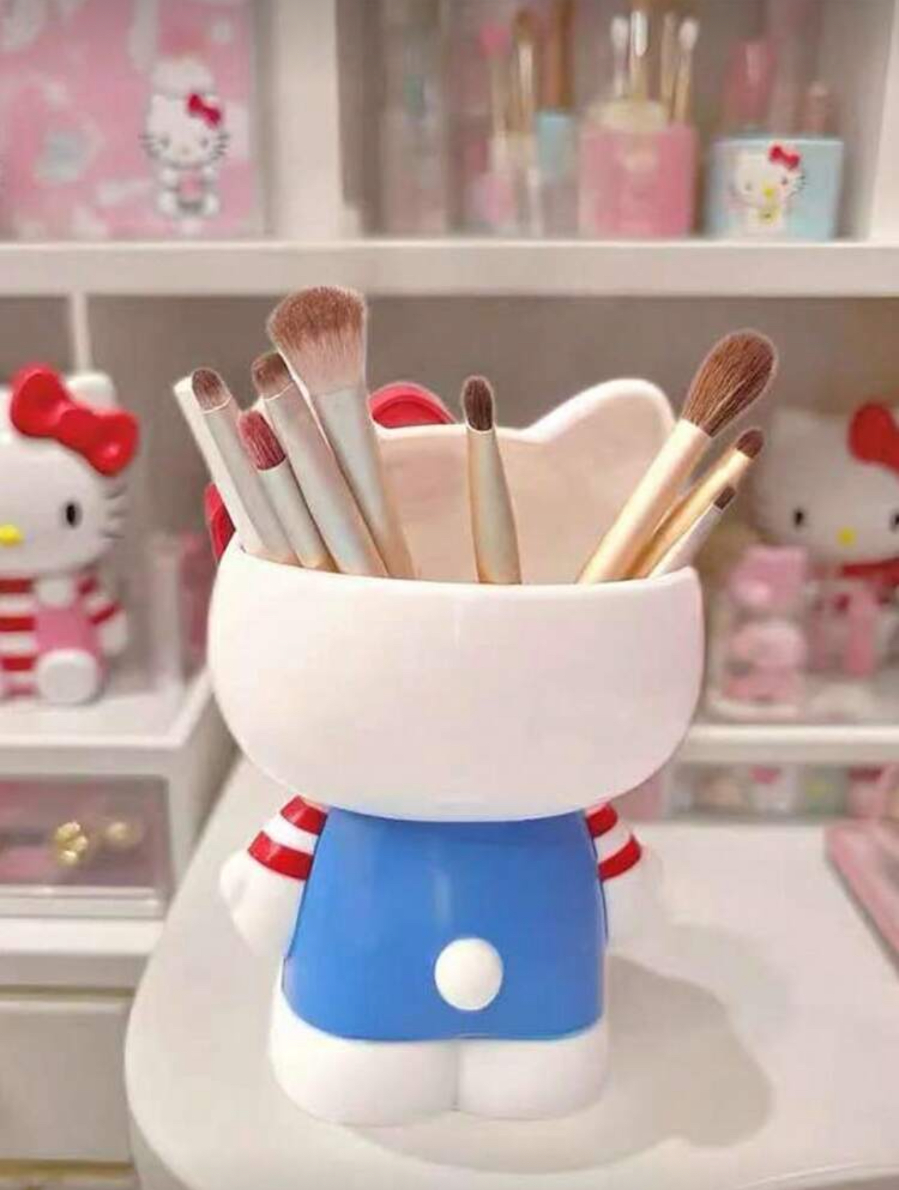 جا لوازم رومیزی طرح هلو کیتی یک اکسسوری زیبا و چندکاره برای نظم دادن به میز آرایش است. این محصول با طراحی کارتونی و رنگهای ملایم، انتخابی عالی برای نوجوانان و علاقهمندان به شخصیتهای کارتونی سانریو میباشد.