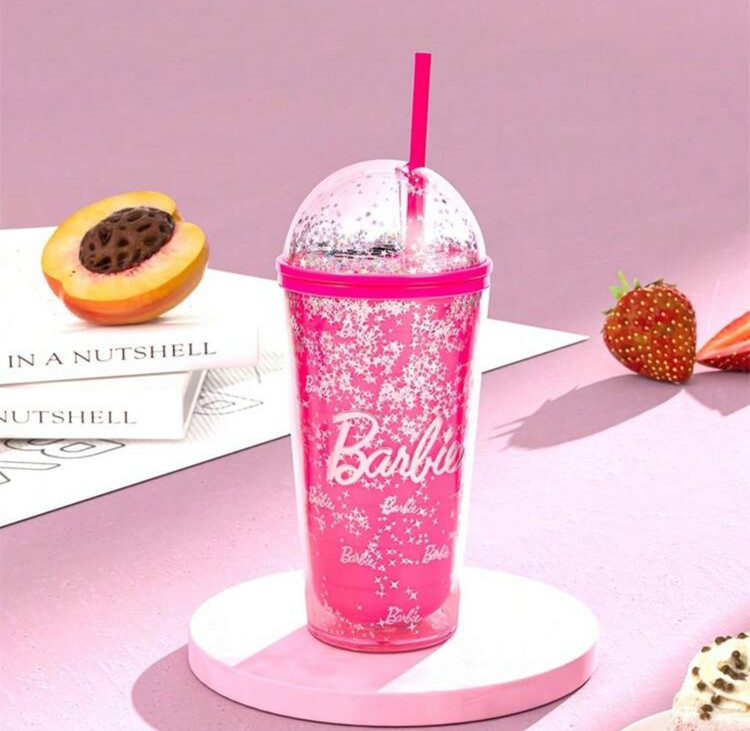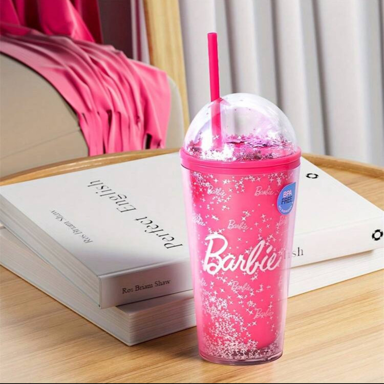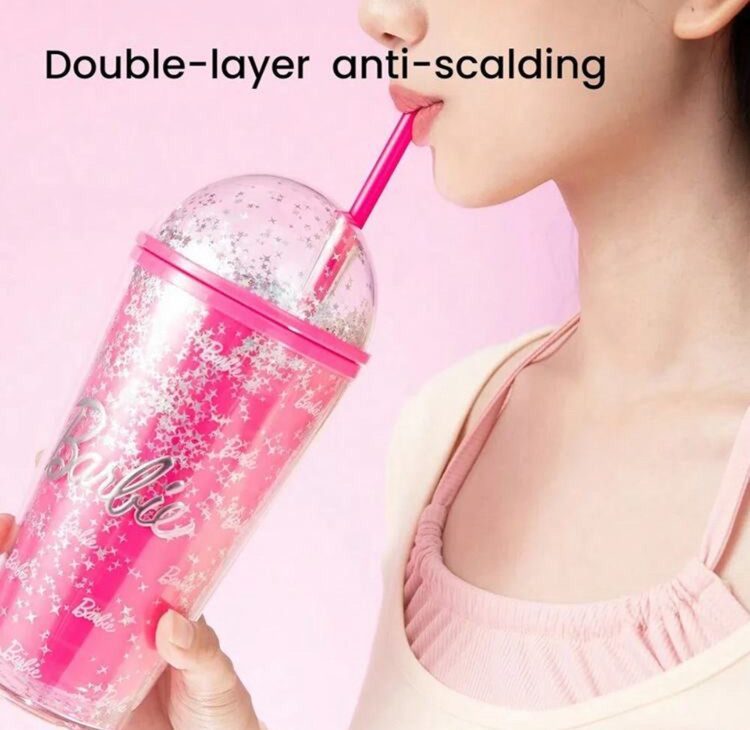Barbie Starry Sky Couple Cartoon Double Layer Plastic Water Cup
