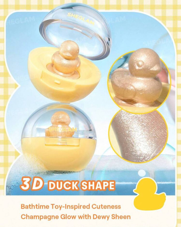 این هایلایتر جذاب و متفاوت، با طراحی سهبعدی اردک طلایی، برای درخشش خاص و دراماتیک روی گونهها، بینی و گوشه چشم ساخته شده! بافت نرم، جلوه براق و ظاهر فانتزی آن باعث شده در بین دخترهای عاشق Y2K و استایلهای کیوت بسیار محبوب باشد.