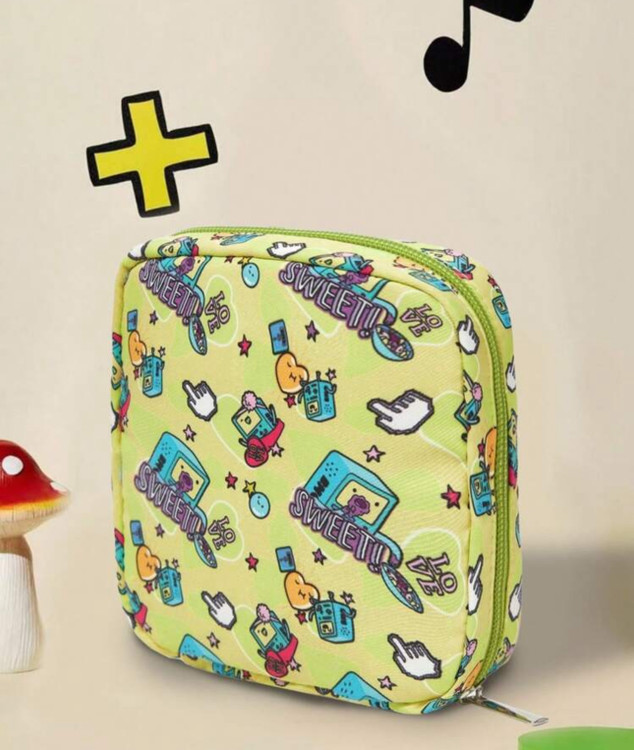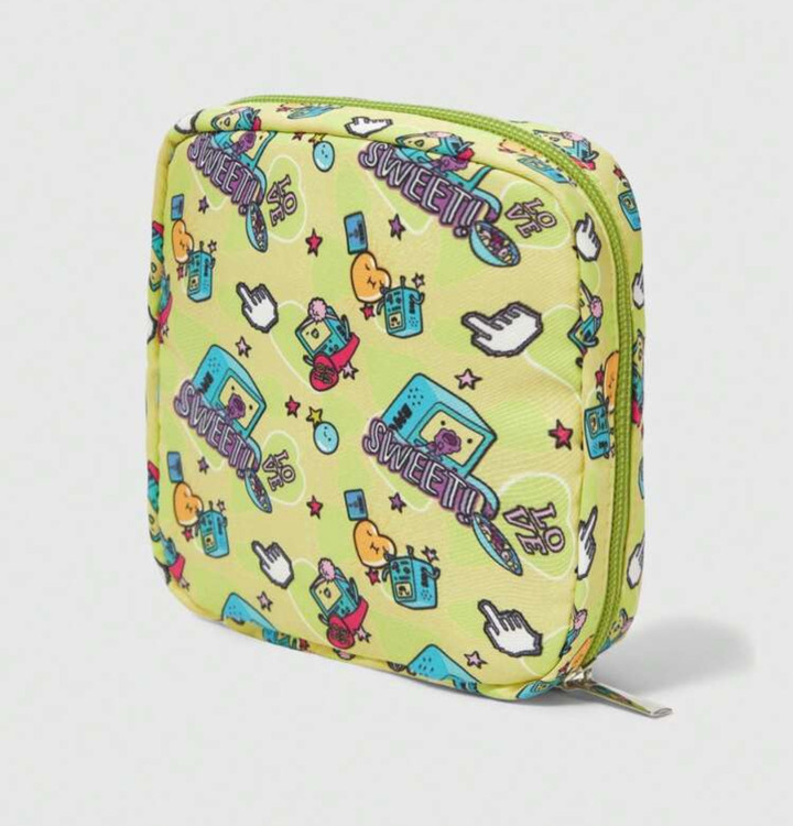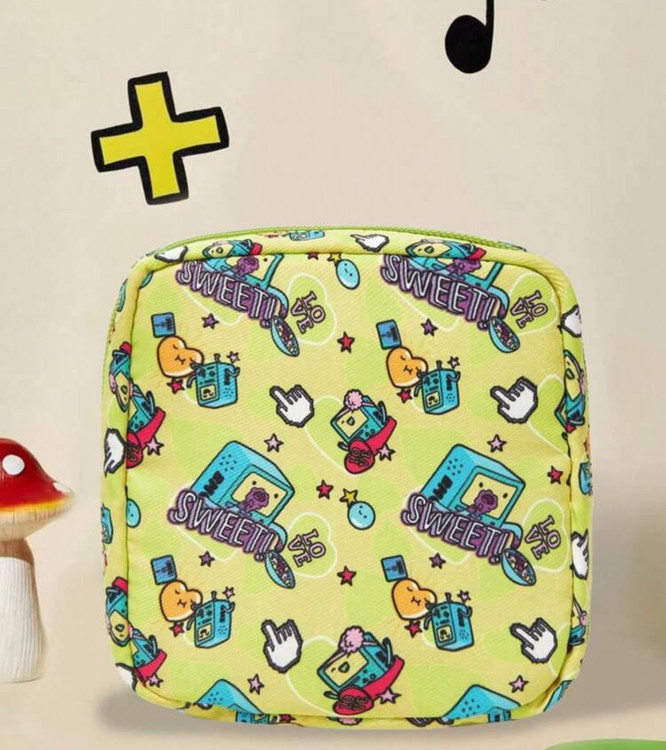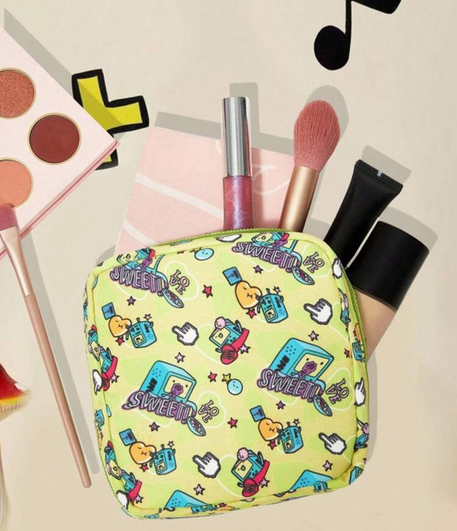 کیف لوازم آرایش Adventure Time X ROMWE – مدل مربعی کوچک با ظرفیت بالا و لایه ضخیم محافظ