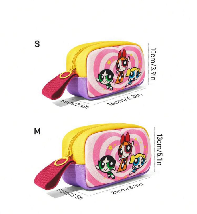 THE POWERPUFF GIRLS Sweet Blossom, Bubbles, Buttercup Pattern Makeup Bag