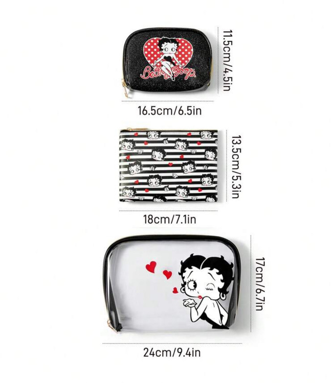 Betty Boop x SHEIN 3pcs/Set Cute Makeup Bag, Storage Bag, Travel Organizer Bag