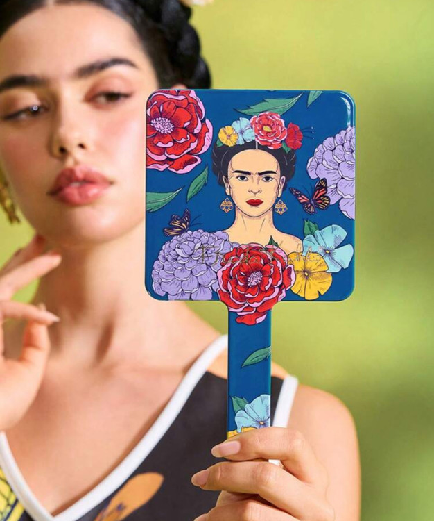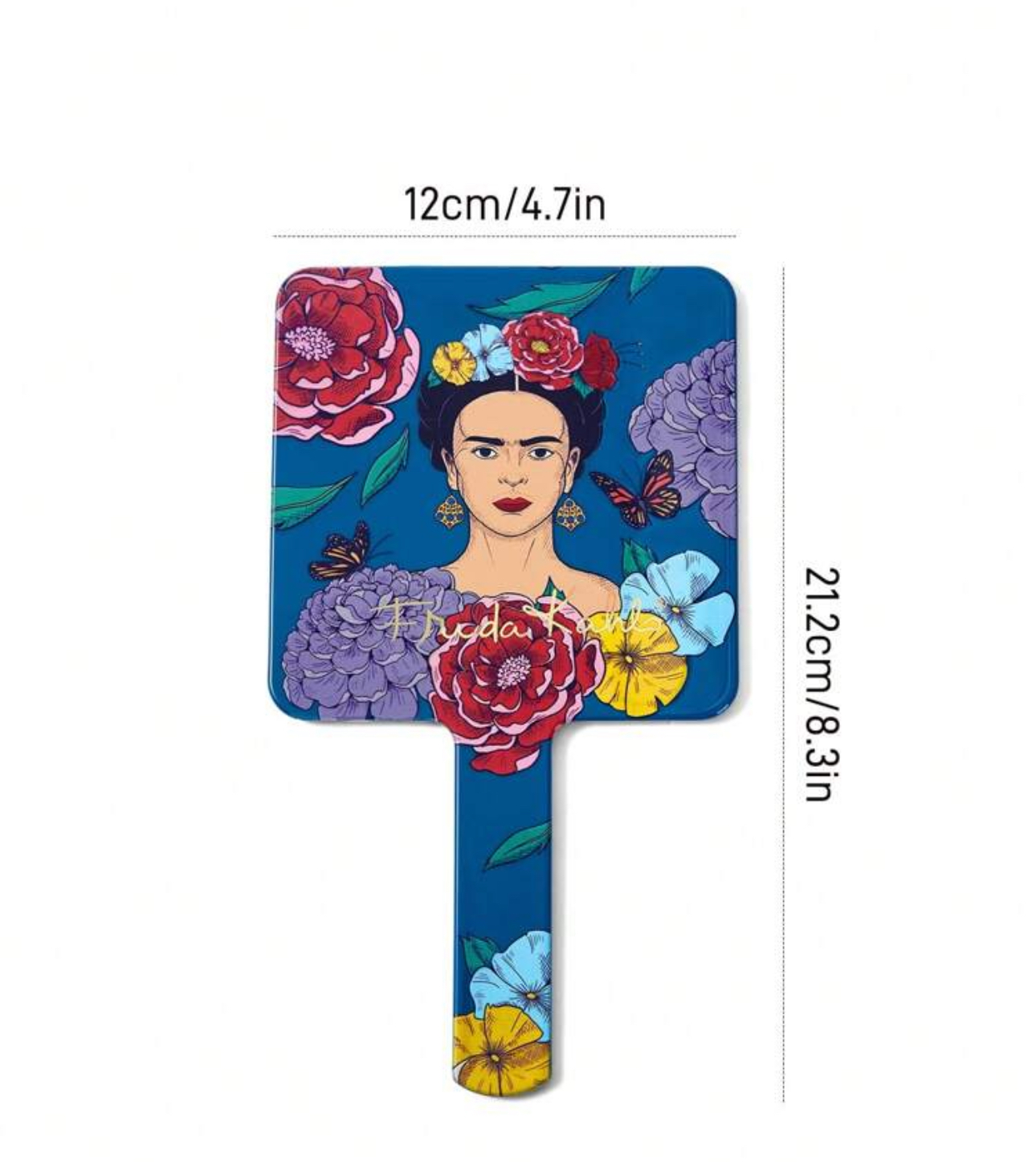 - نام محصول: آینه دستی مربعی با طرح شخصیت فریدا کالو و چاپ گل