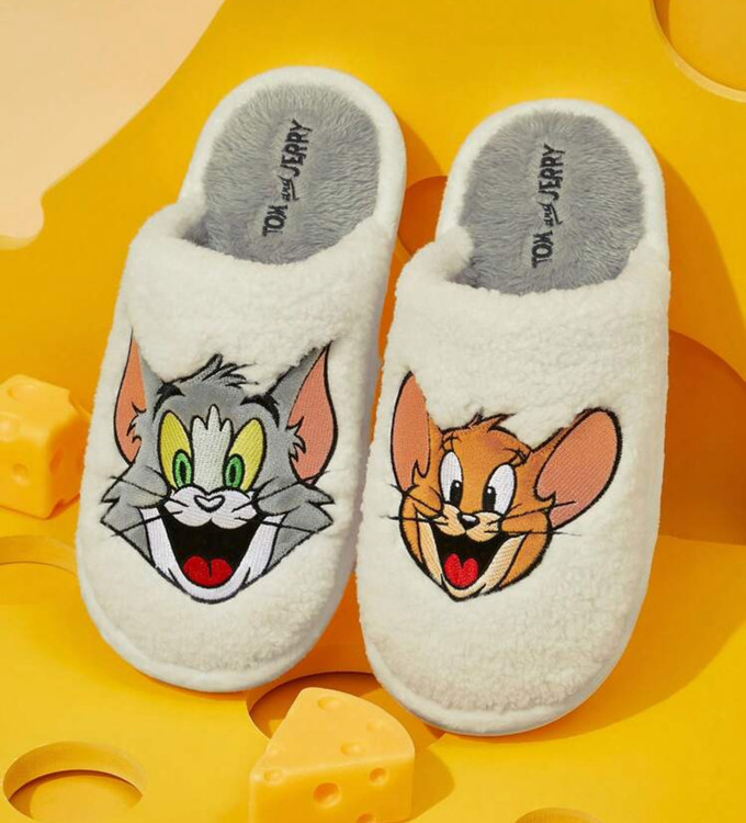 TOM & JERRY X SHEIN Asymmetric Cute Cartoon Fluffy Slippers