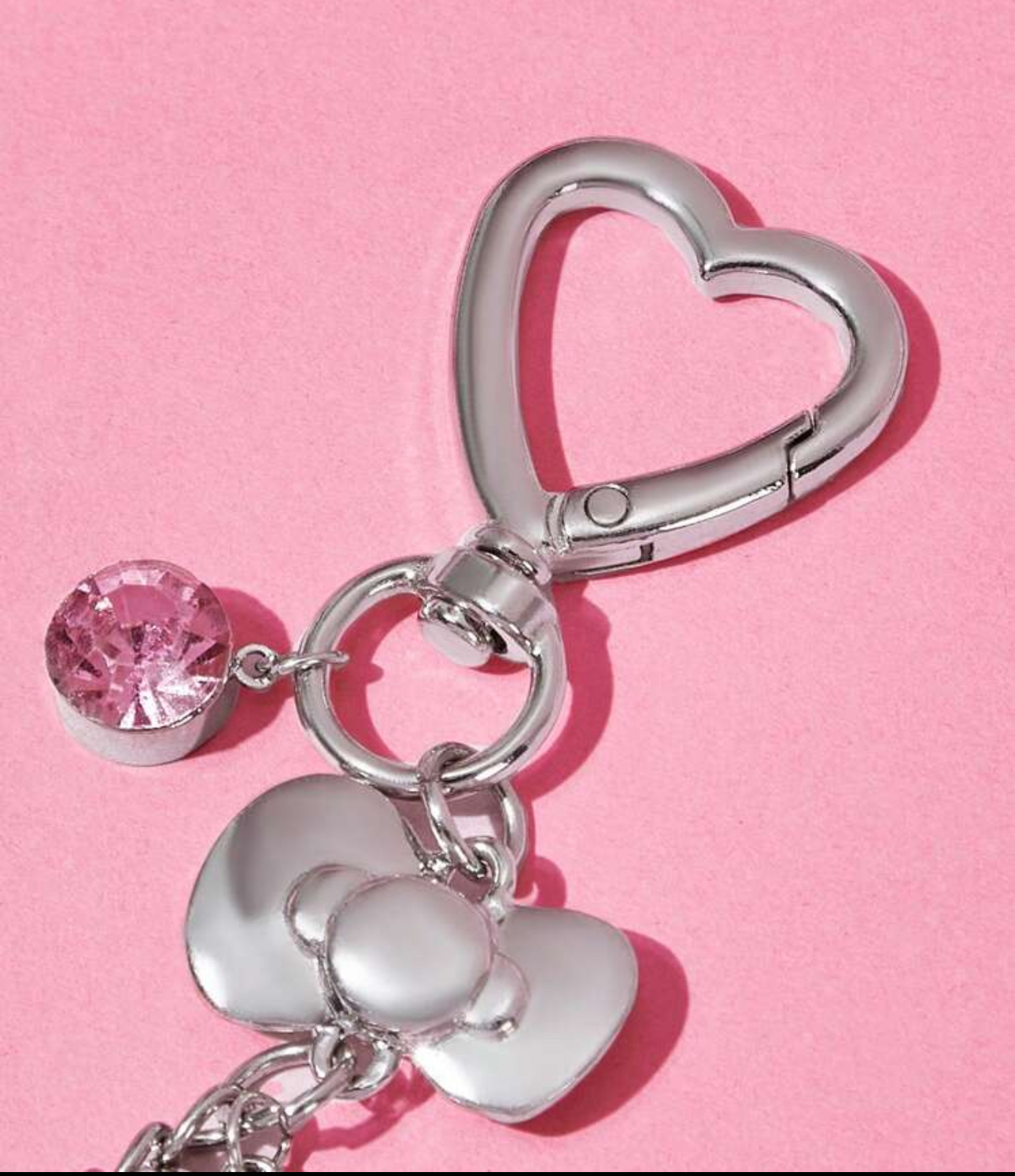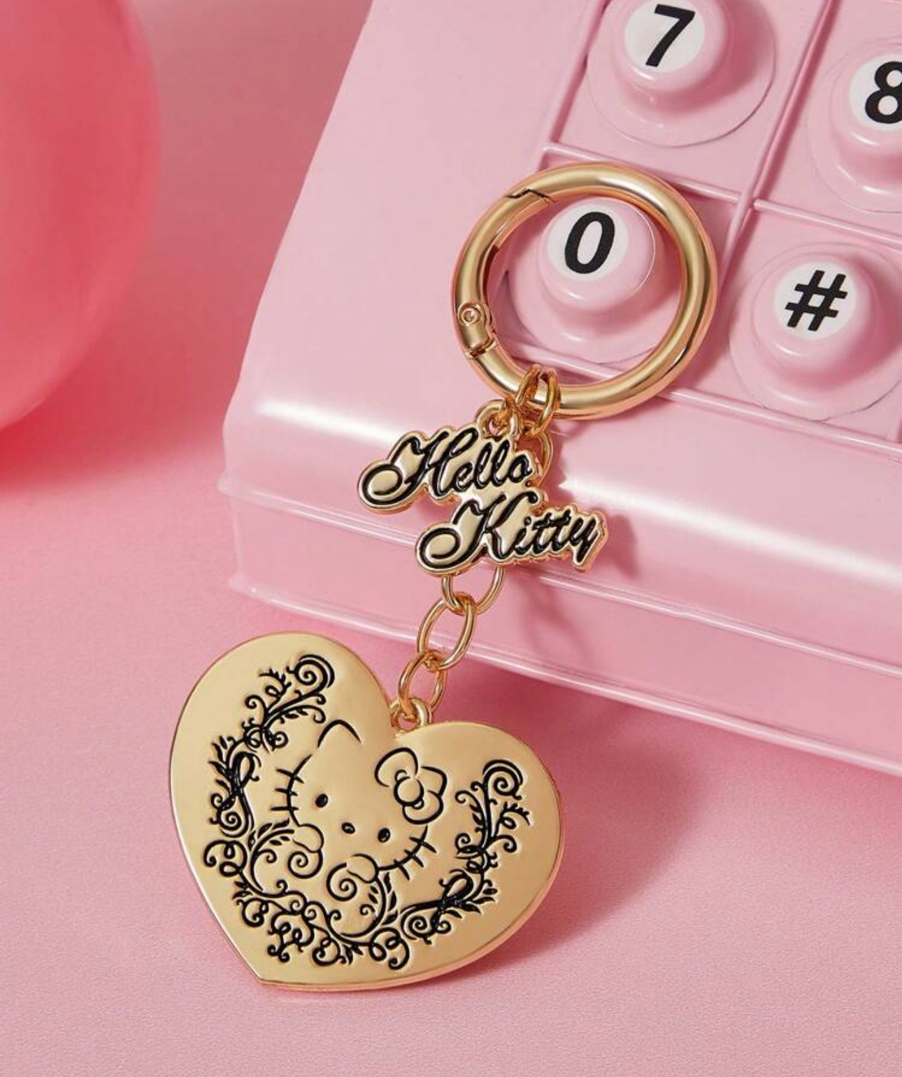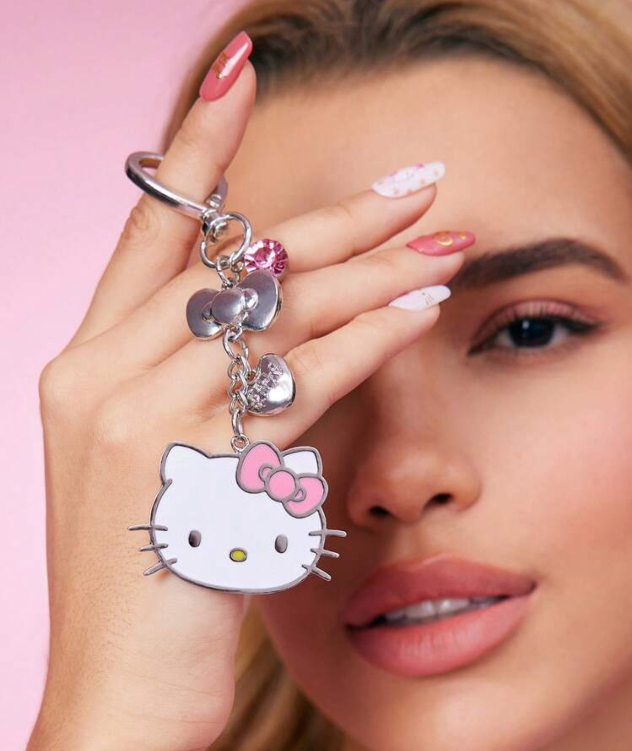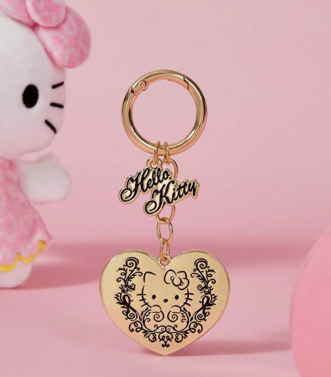 آویز کیف و جاکلیدی قلبی شکل با پاپیون سهبعدی و نگیندار – همکاری Hello Kitty و SHEIN)