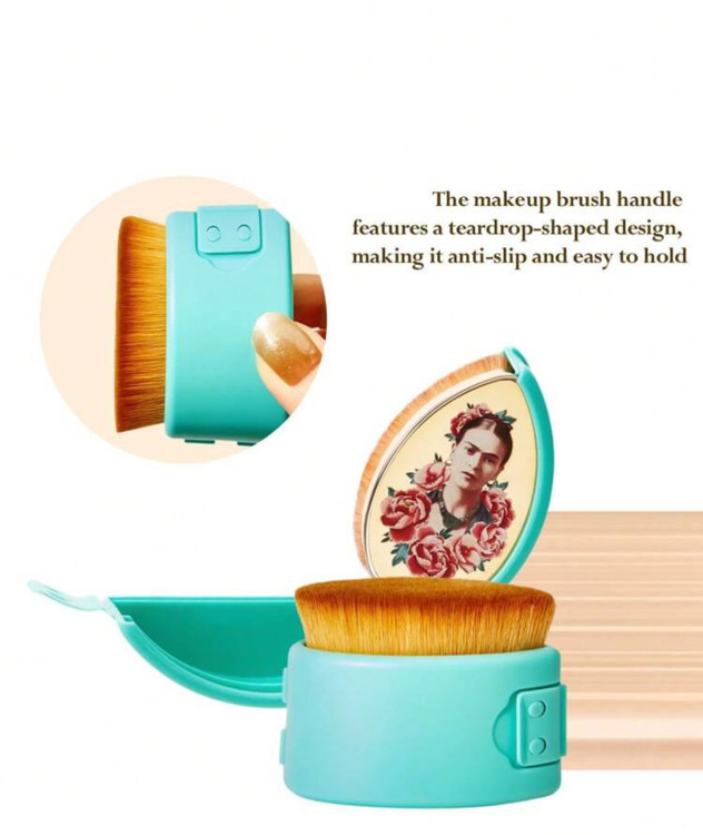 Frida Kahlo Figure Graphic Storable Foundation Brush, Curved Bristles Without Clumping