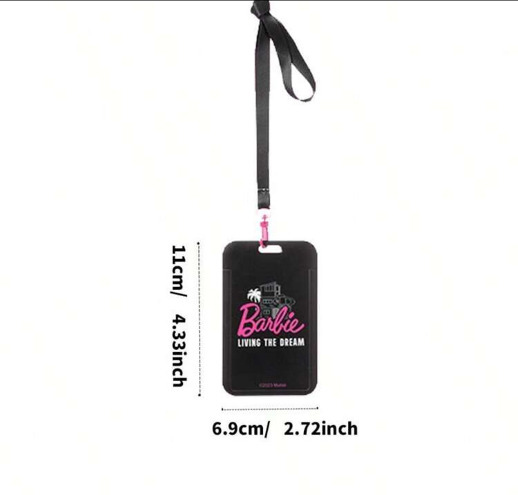 Miniso Barbie Series Black ABS, Polyester, And Zinc Alloy Card Holder Keychain(1PC)