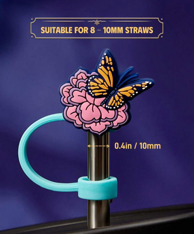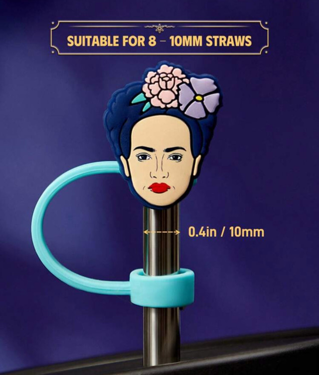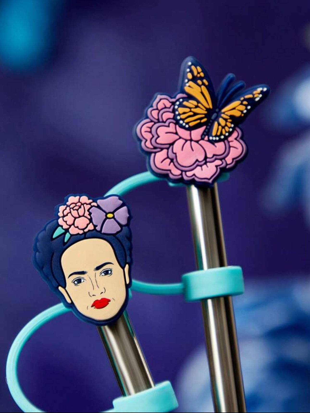 Frida Kahlo X SHEIN 2pcs 0.4in Diameter Flower Butterfly & Portrait Silicone Straw Sleeve
