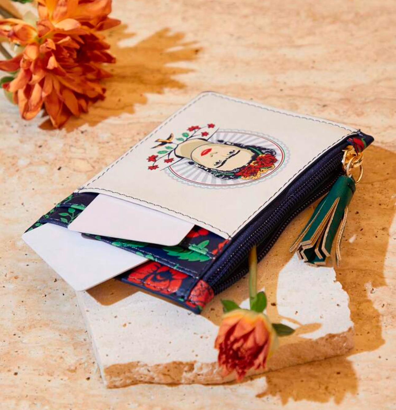 💳 مشخصات جا کارتی فریدا کالو با طرح گل و تصویر پرتره