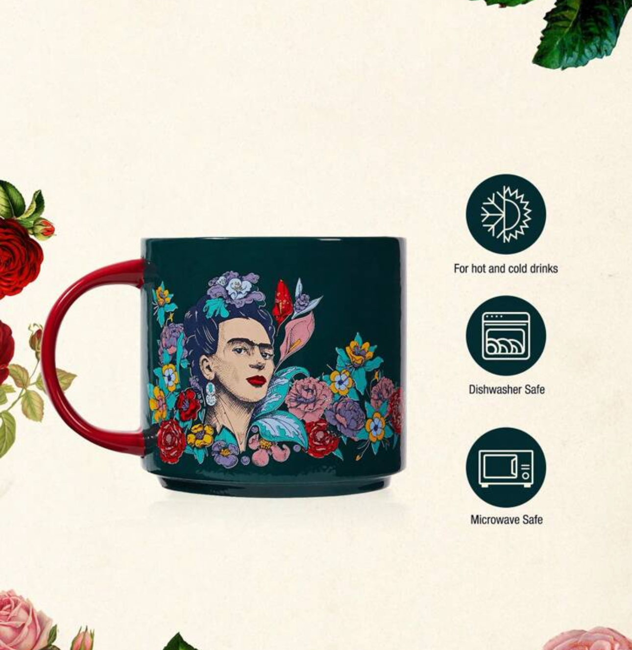 ☕ مشخصات ماگ سرامیکی فریدا کالو با طرح گل و پرتره