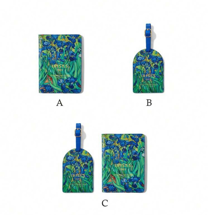 ست جلد پاسپورت و پلاک چمدان با طرح گل زنبق – الهامگرفته از آثار ونسان ون گوگ