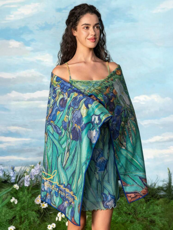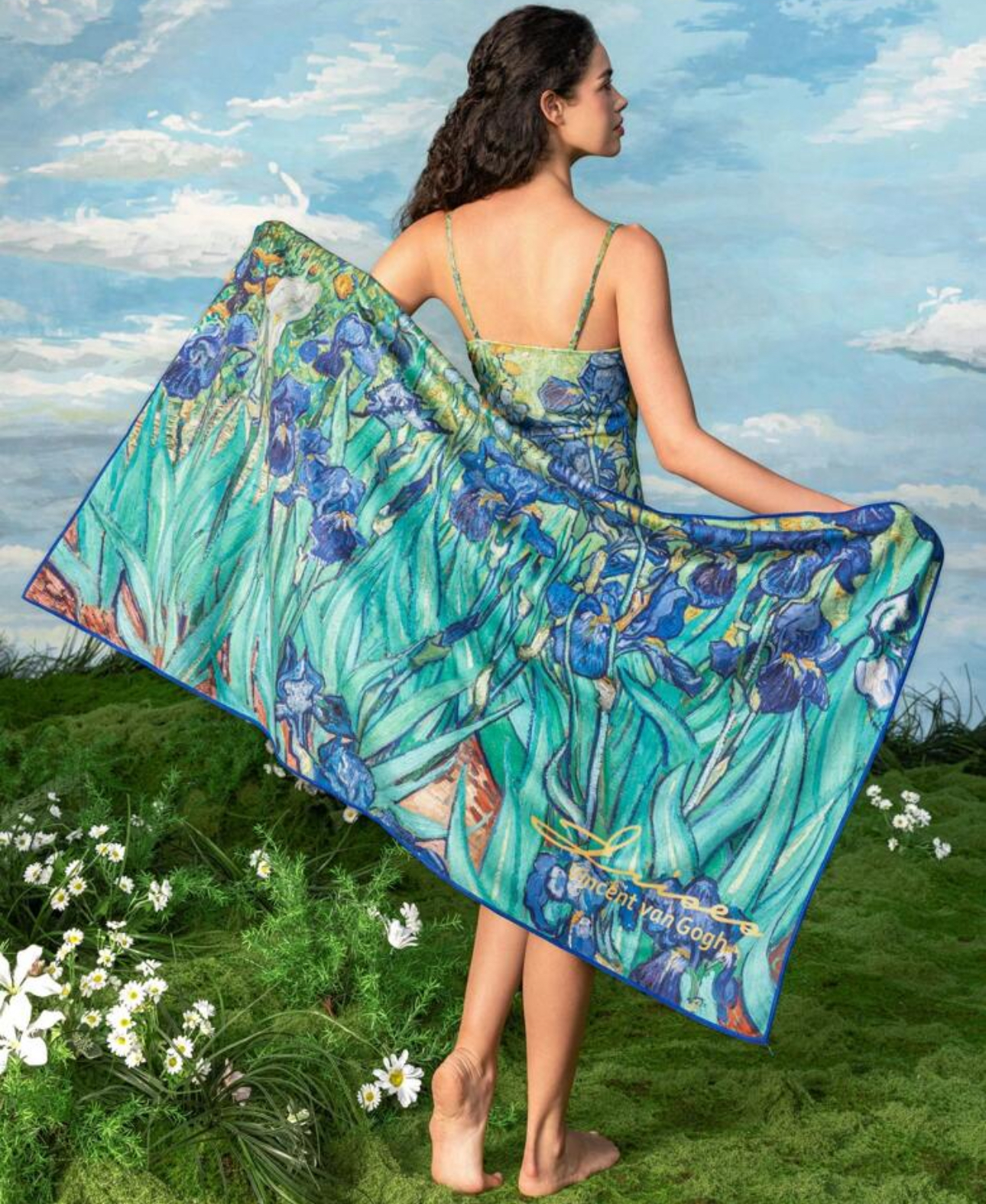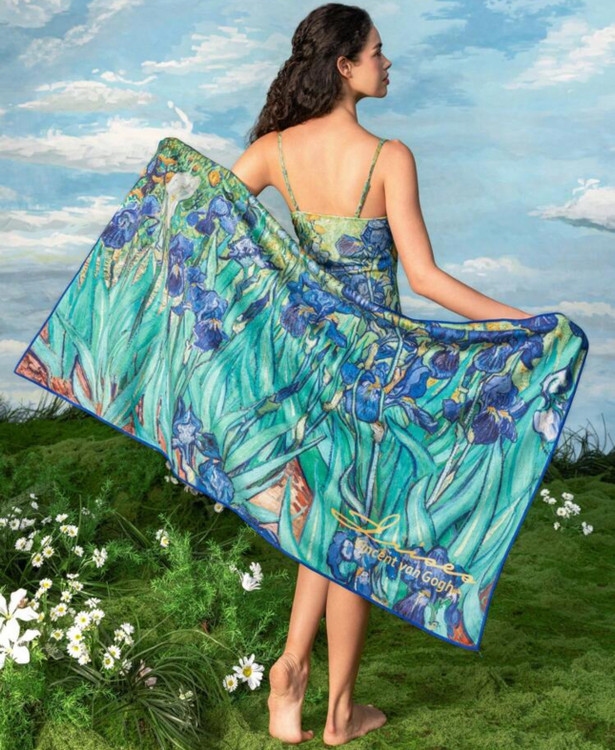 حوله حمام مایکروفایبر سریعخشکشونده با طرح گل زنبق – الهامگرفته از ونسان ون گوگ