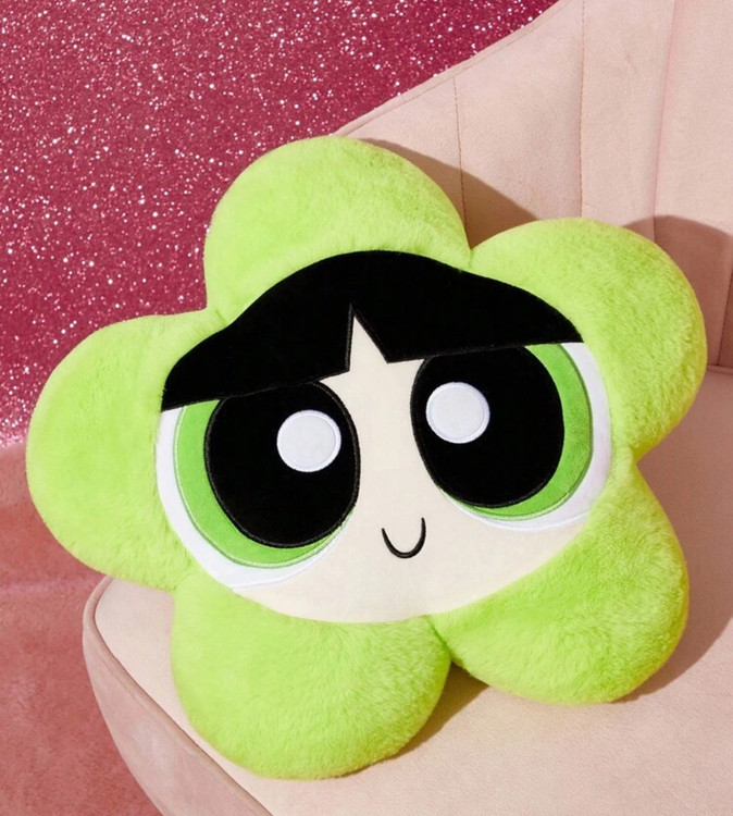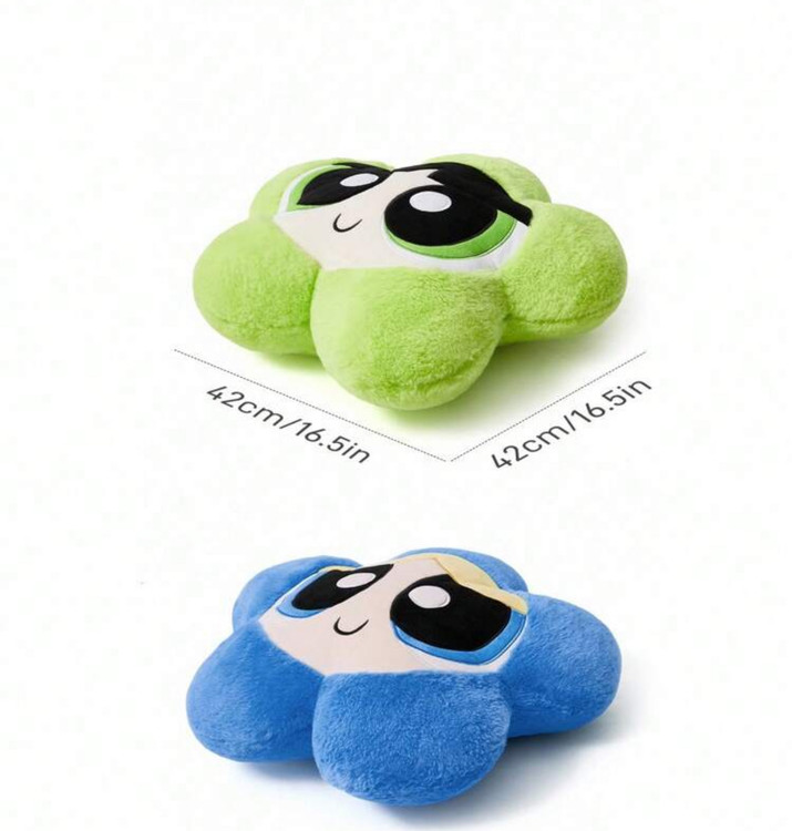 THE POWERPUFF GIRLS X SHEIN 1pc Bubbles/Buttercup Pattern Cute 3D Ruffle Throw Pillow