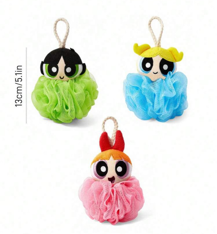 بمب حمام سهبعدی + اسفنج توری طرح پاورپاف گرلز (Blossom / Buttercup / Bubbles)
