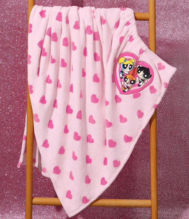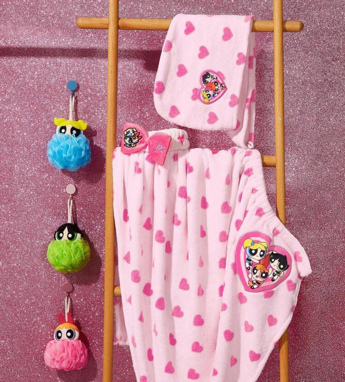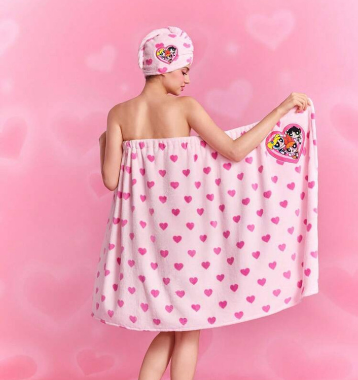 THE POWERPUFF GIRLS X SHEIN 1pc Heart & Blossom, Bubbles, Buttercup Pattern Absorbent & Soft Bath Skirt/Towel