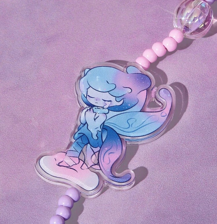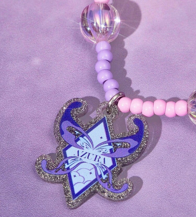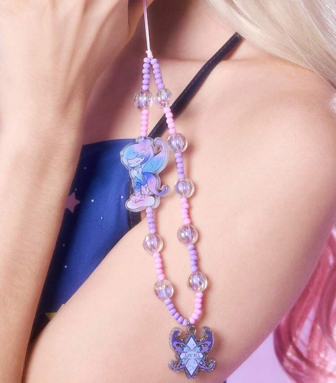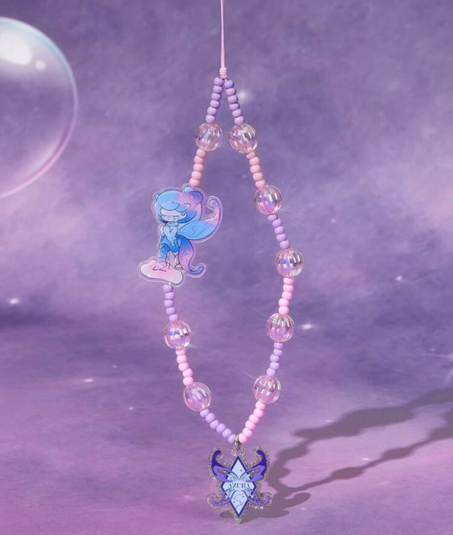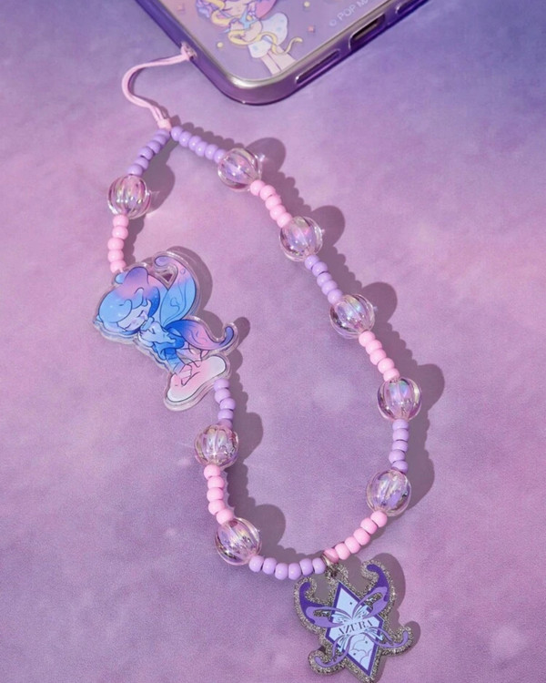 Pop Mart Azura Cartoon Pattern Handmade Acrylic Beaded Phone Lanyard, Dreamy Purple