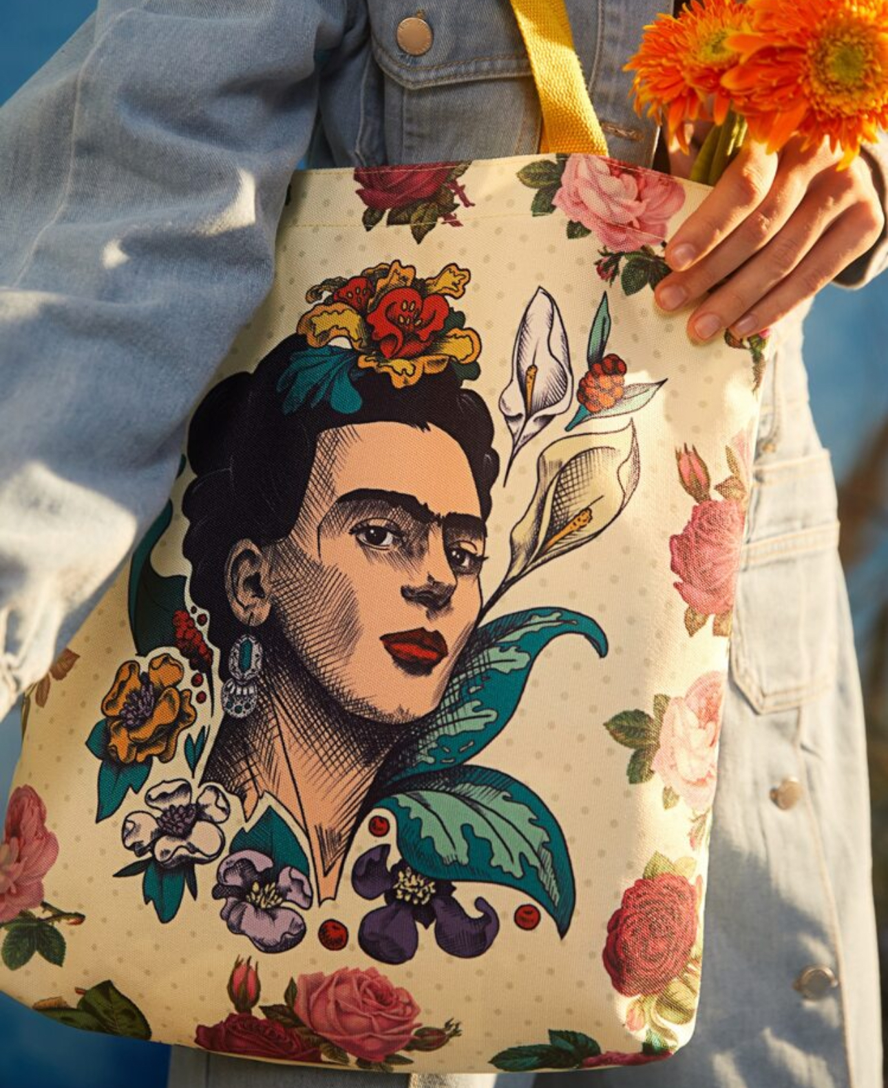 Frida Kahlo X SHEIN کیف دستی مربعشکل زنانه با طرح گل رز و تصویر – مناسب هدیه