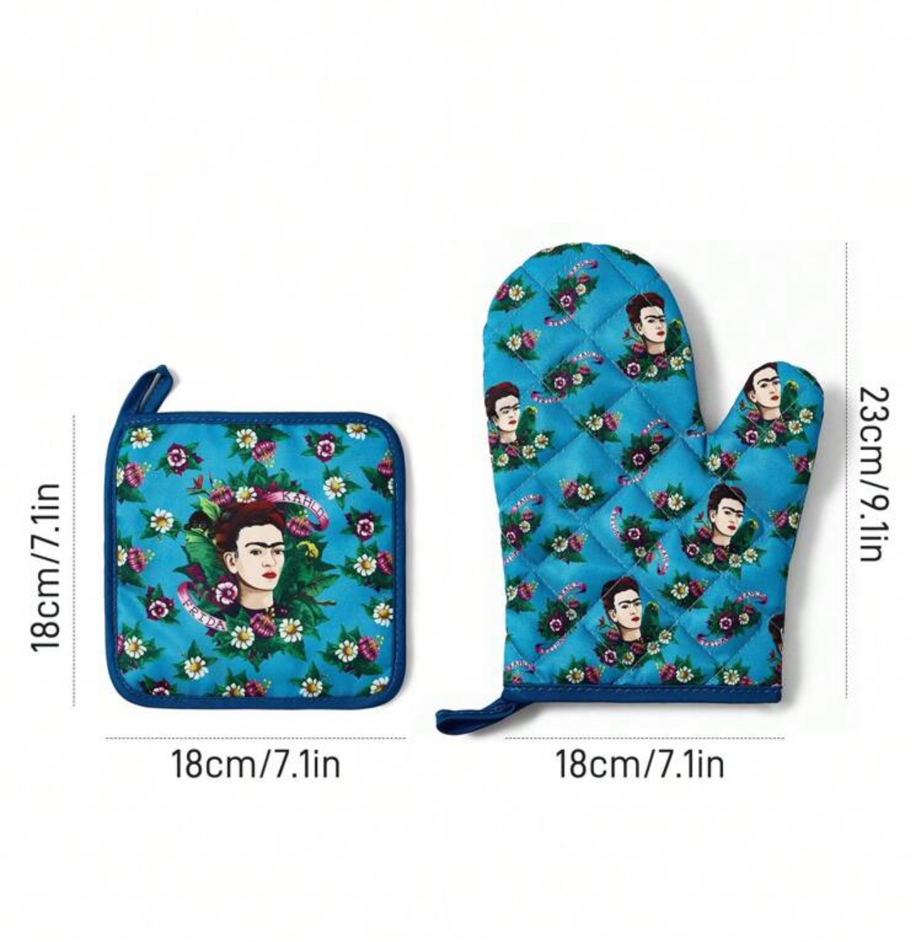 Frida Kahlo X SHEIN ست عایق حرارتی آشپزخانه – تک و ست کامل، ضد حرارت و ضد سوختگی