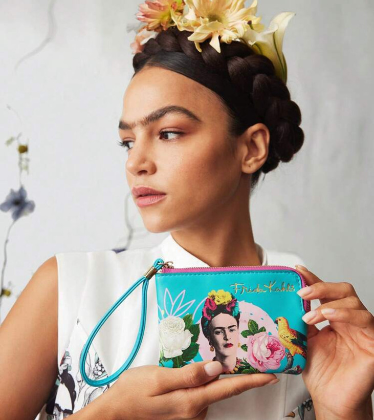 - طراحی خاص با چاپ شخصیت فریدا کالو به همراه گلهای رنگارنگ