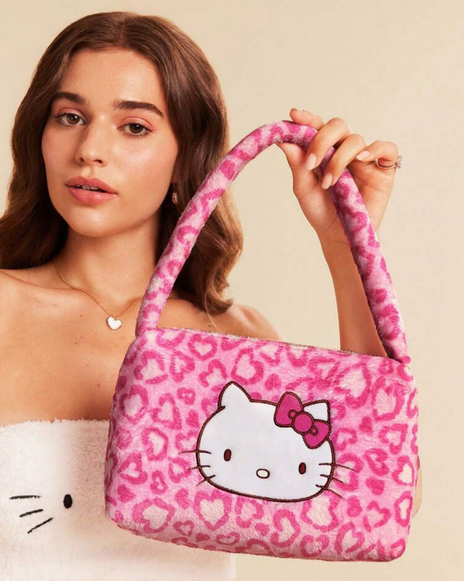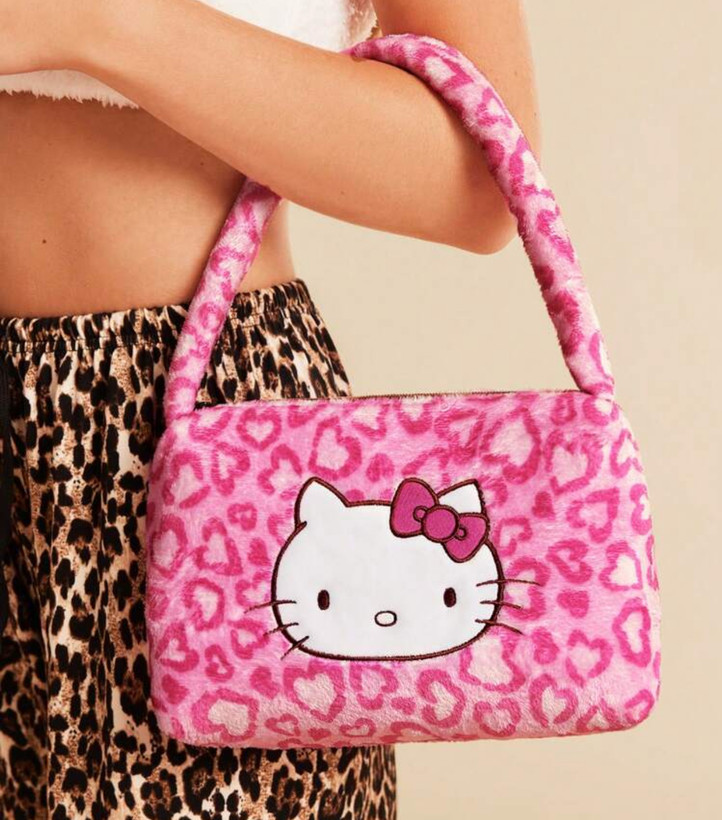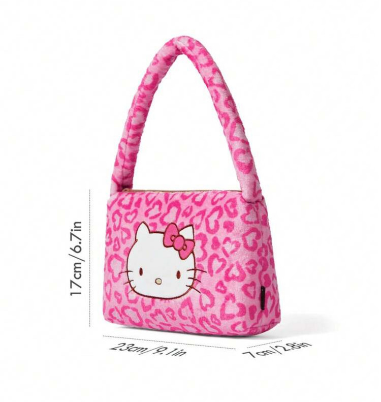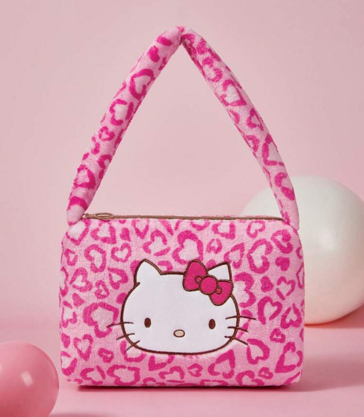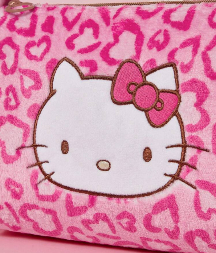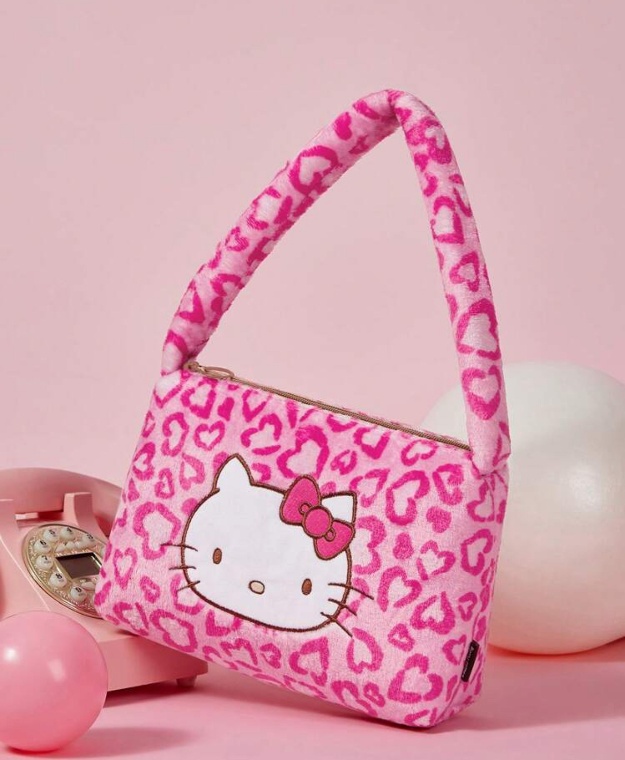 کیف دوشی زنانه HELLO KITTY AND FRIENDS – صورتی، با طرح کارتونی و قلبی پلنگی