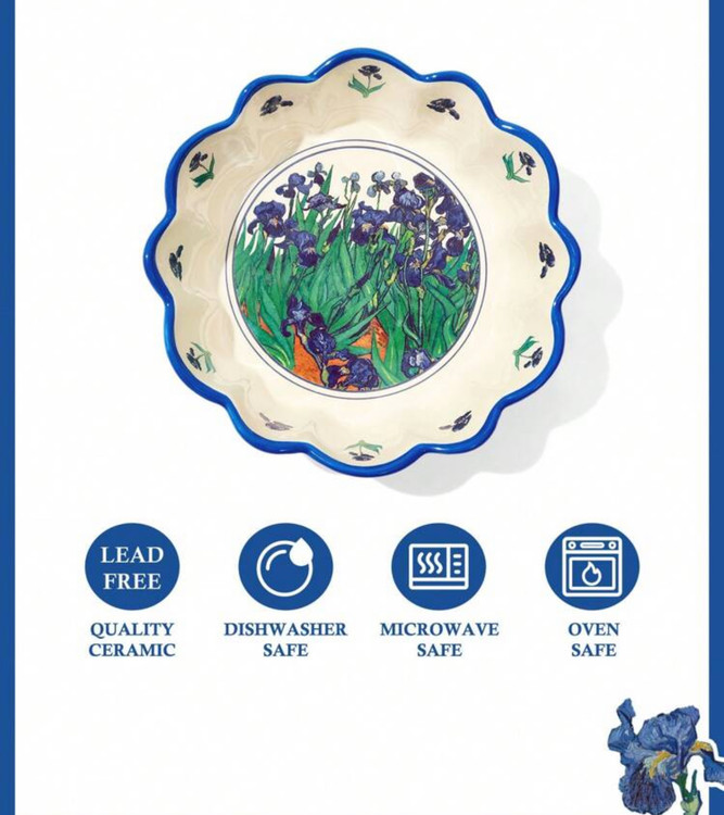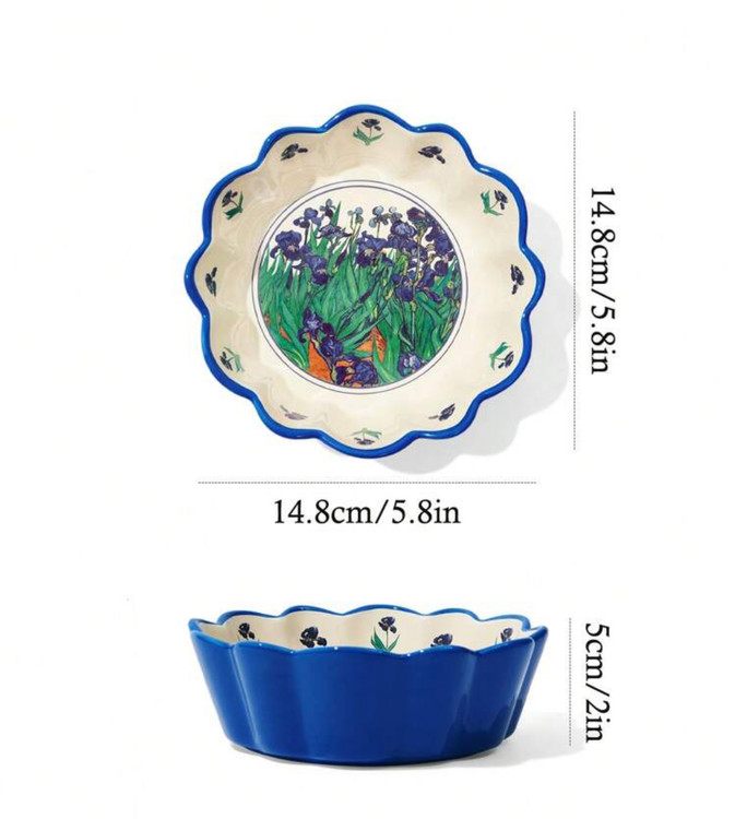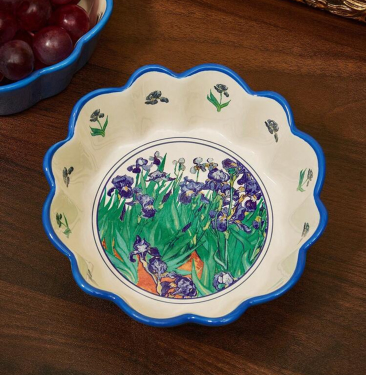 کاسه سرامیکی SHEIN مدل Touch of Art با طراحی گلبرگی - همکاری هنری با طرح “زنبقها” از ون گوگ