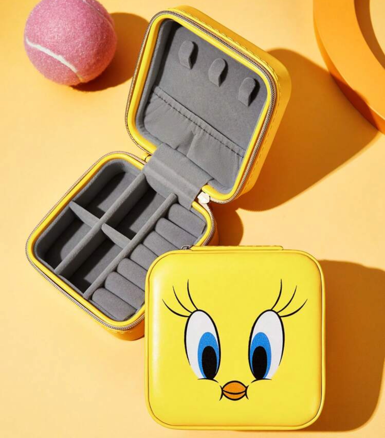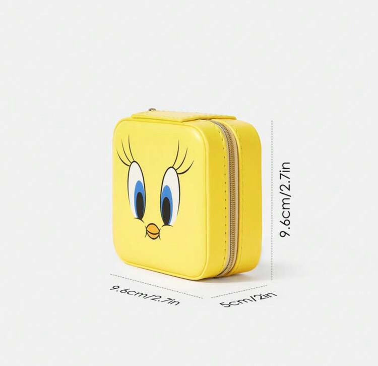 LOONEY TUNES X SHEIN 1pc Portable Cartoon Pattern Yellow Jewelry Storage Box