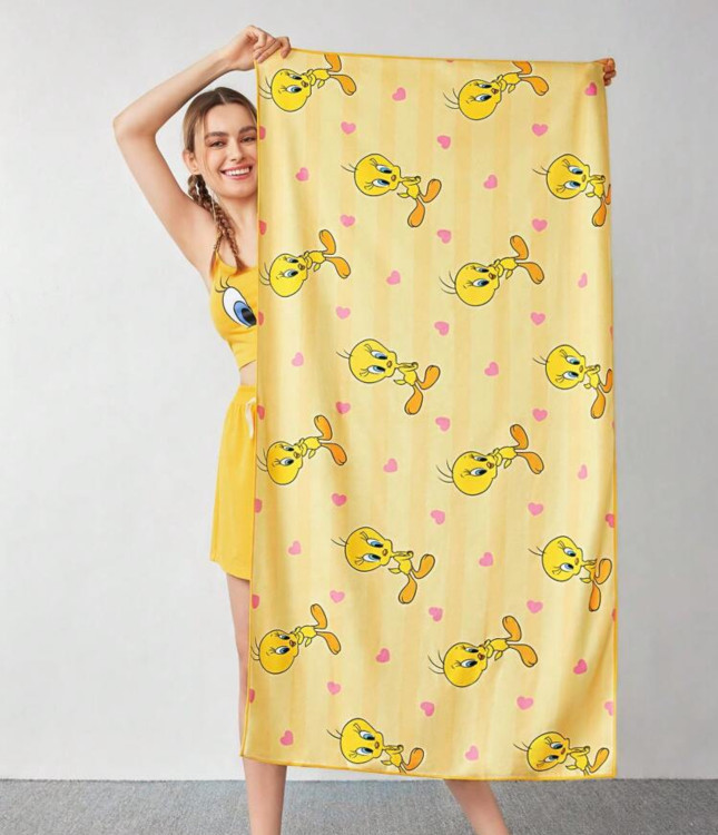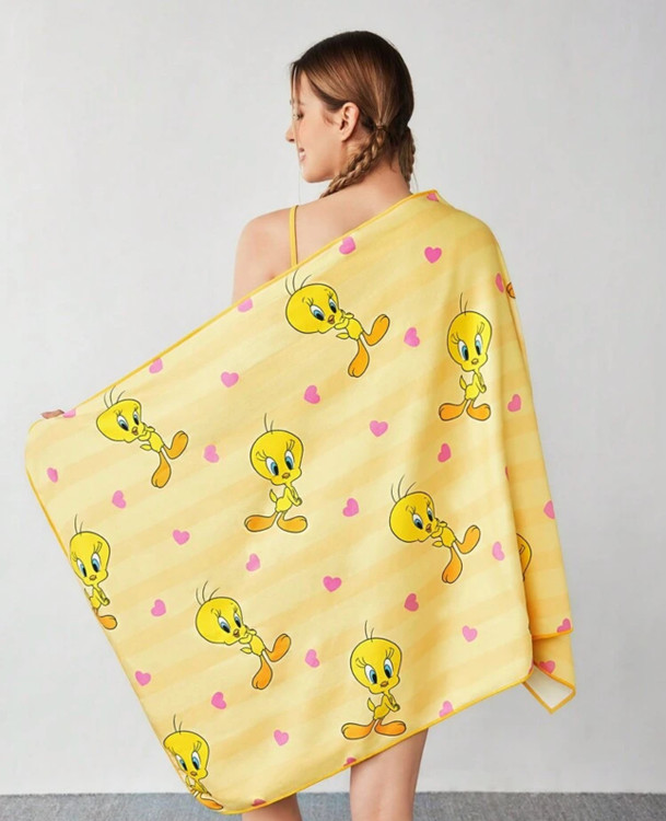LOONEY TUNES X SHEIN Cartoon And Heart Printed Bath Towel, For Home Bathroom Summer
