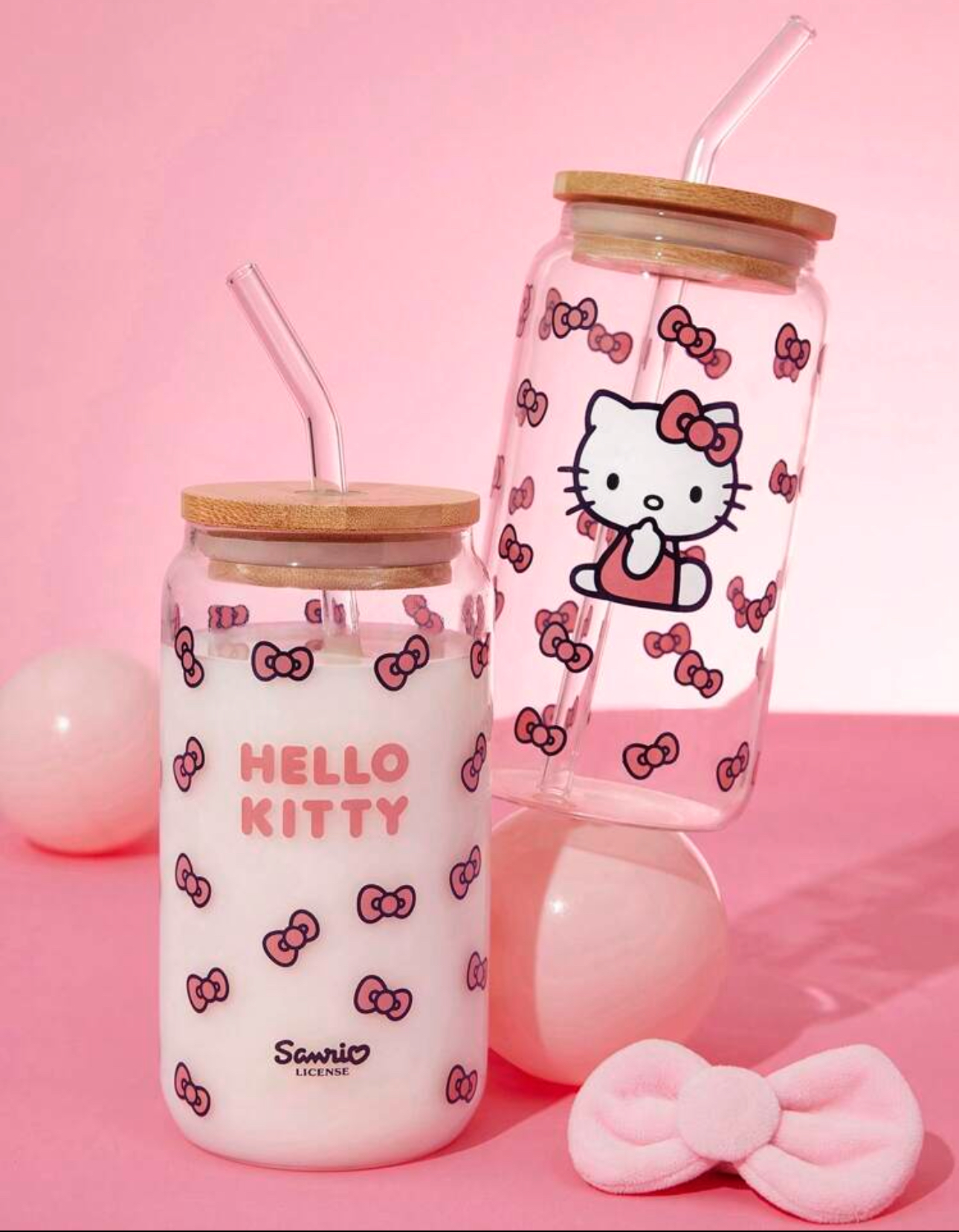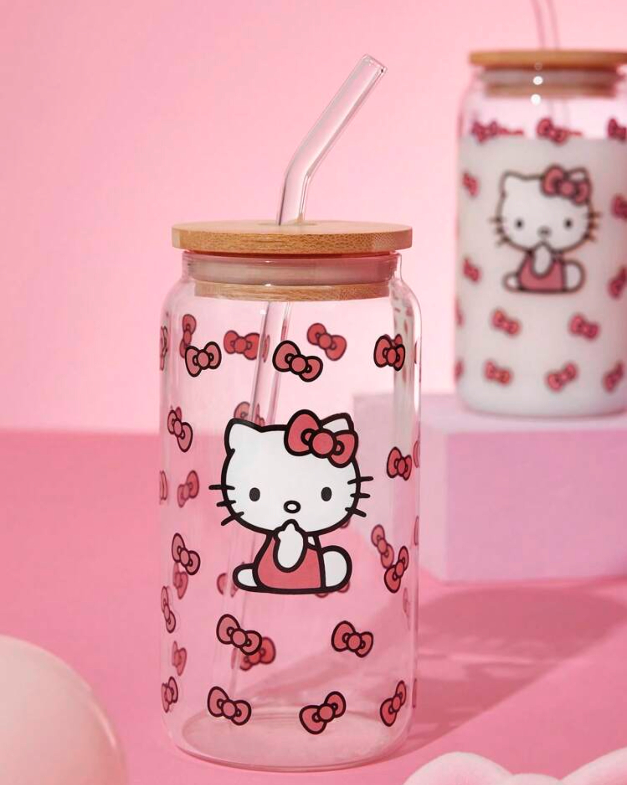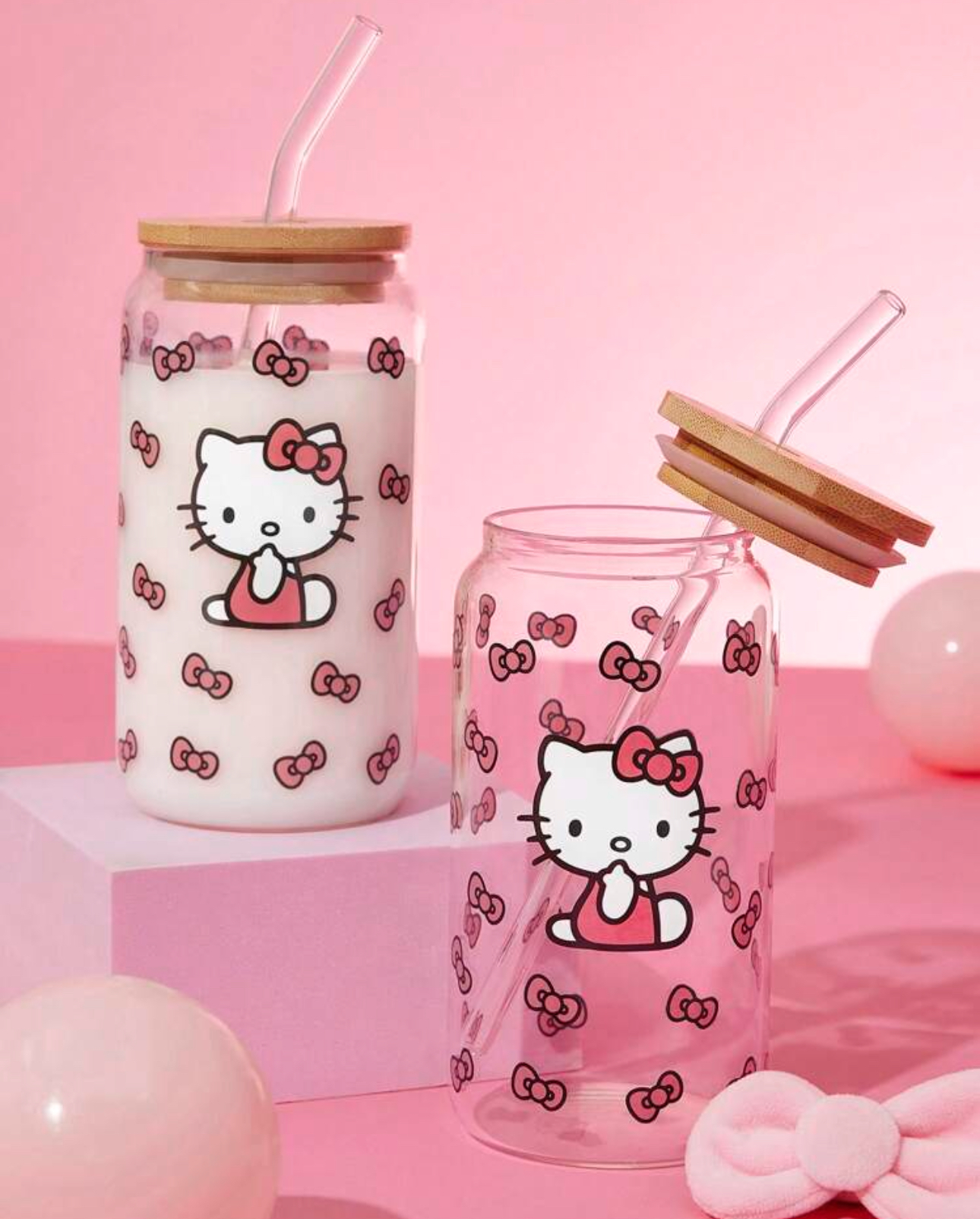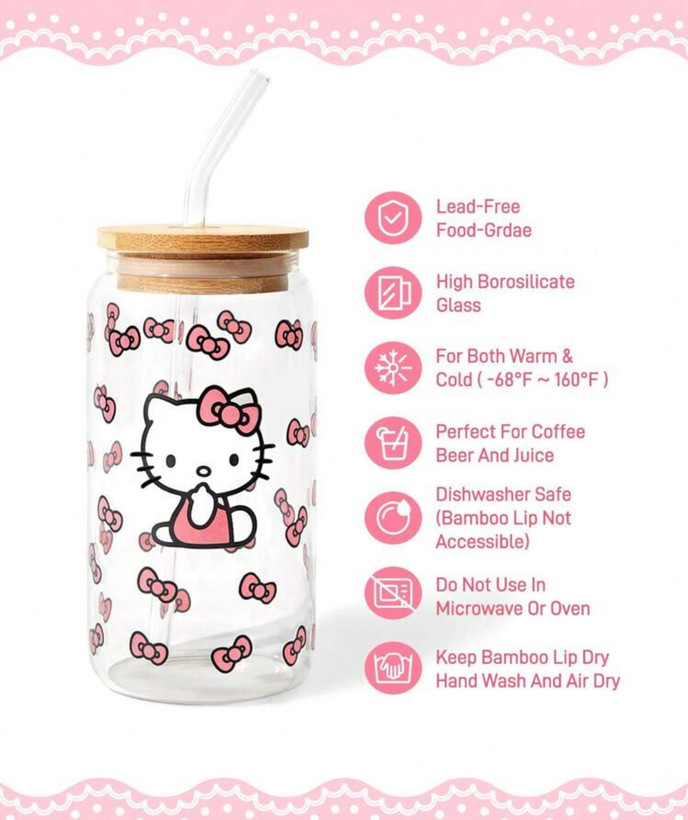 لیوان شیشهای بزرگ با طرح پاپیون و گربه کیوت – Hello Kitty and Friends | SHEIN