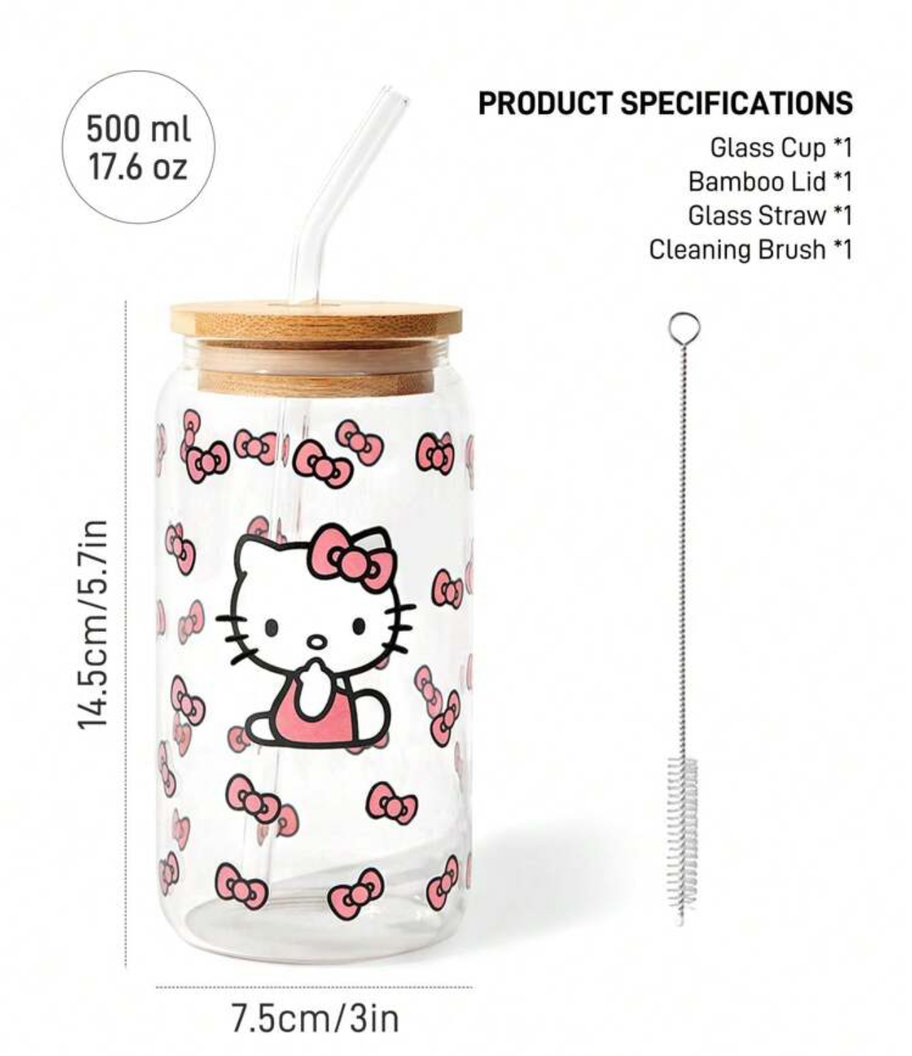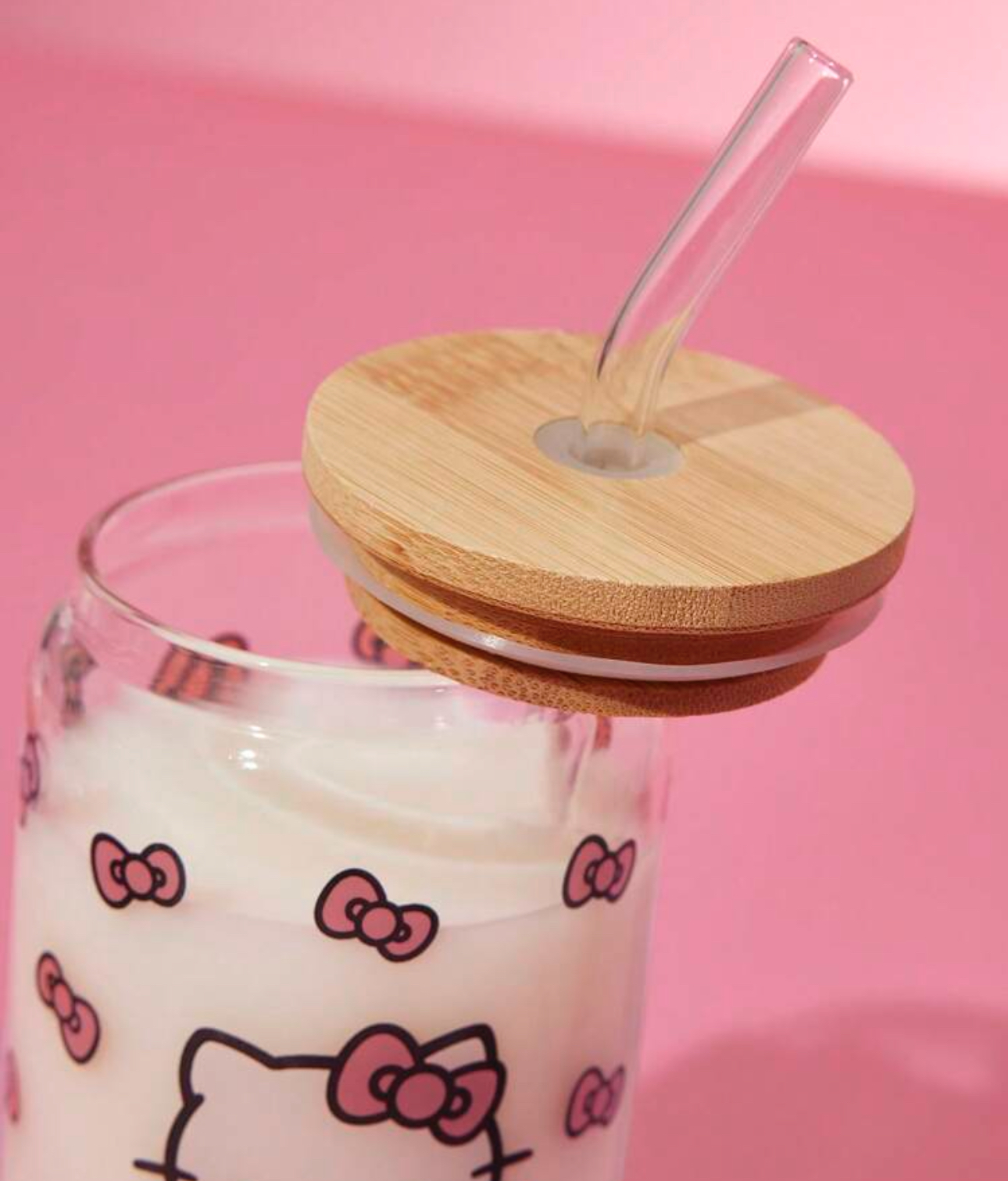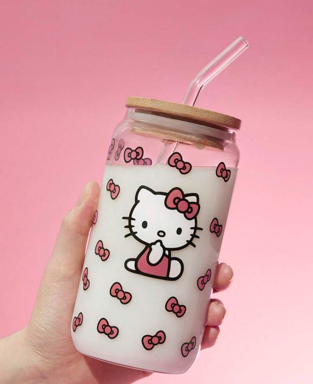 لیوان شیشهای بزرگ با طرح پاپیون و گربه کیوت – Hello Kitty and Friends | SHEIN