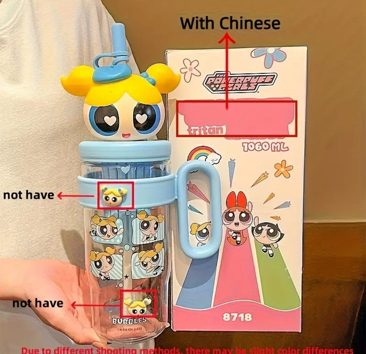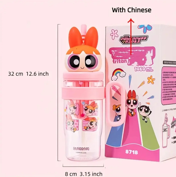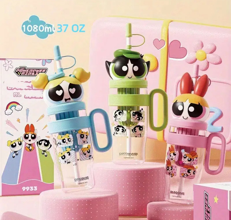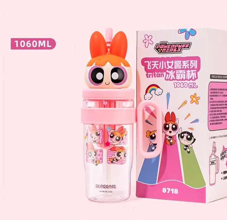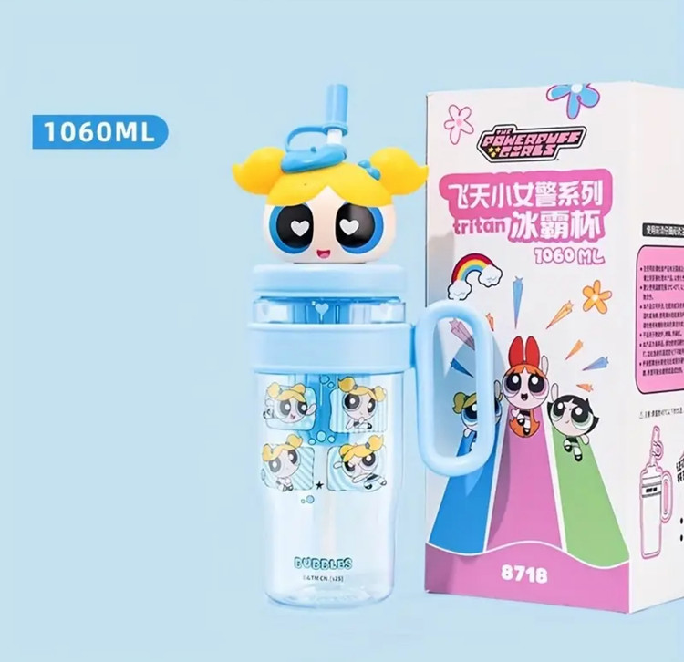 بطری آب کارتونی پاورپاف گرلز مدل Bubbles، ظرفیت ۱۰۶۰ میلیلیتر، ساخته شده از پلاستیک تریتان مقاوم و ایمن برای مواد غذایی، دارای درب سهبعدی شخصیت کارتونی با نی سیلیکونی و دسته حمل، طراحی سبک و بادوام، مقاوم در برابر ضربه و نشتی، مناسب برای استفاده روزانه، سفر، مدرسه و فعالیتهای ورزشی، ایدهآل برای انواع نوشیدنیهای سرد و گرم و هدیهای جذاب برای طرفداران پاورپاف گرلز