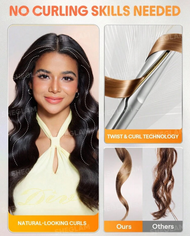SHEGLAM HAIR Sleek Chic Twist Kiss Flat Iron,Negative Ion 2-In-1
