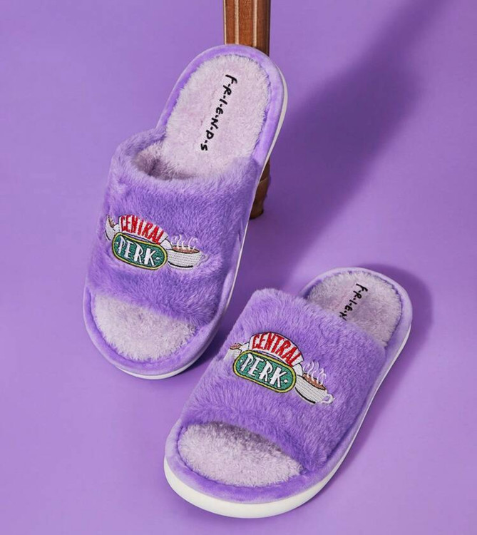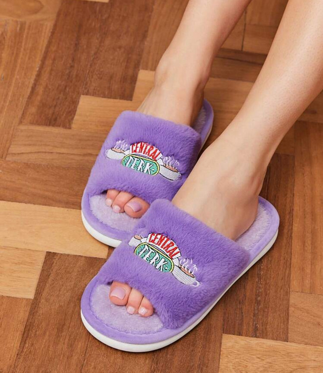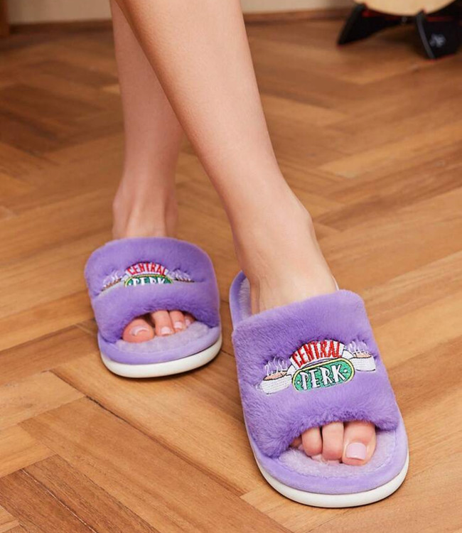 FRIENDS X SHEIN Central Perk Coffee Cup Embroidered Plush Women's Slippers