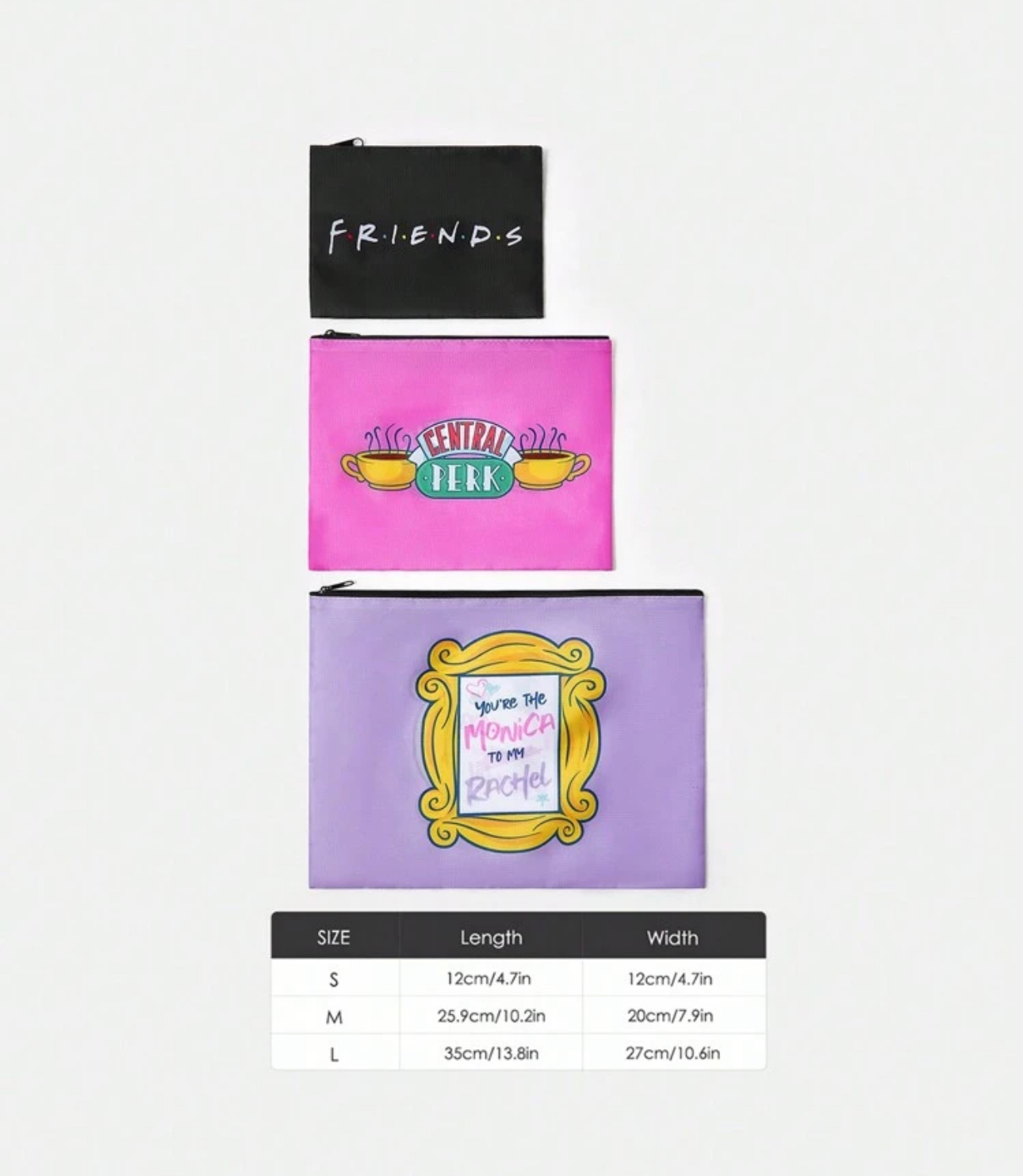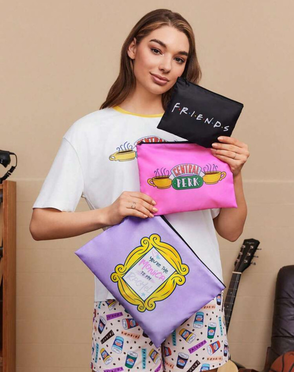 FRIENDS X SHEIN 3pcs Set Of Central Perk And Frame Printed RPET Zippered Storage Bags,Gifts