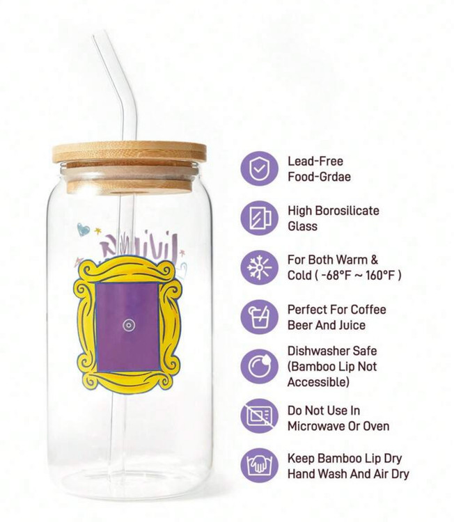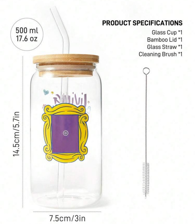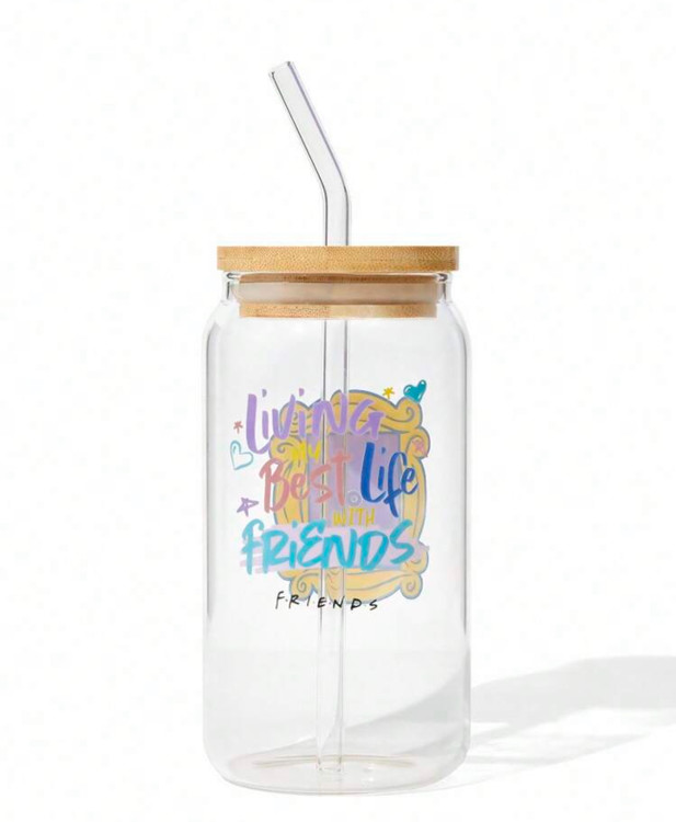 FRIENDS X SHEIN 1pc 500ml/17.6oz Glass Straw Cup